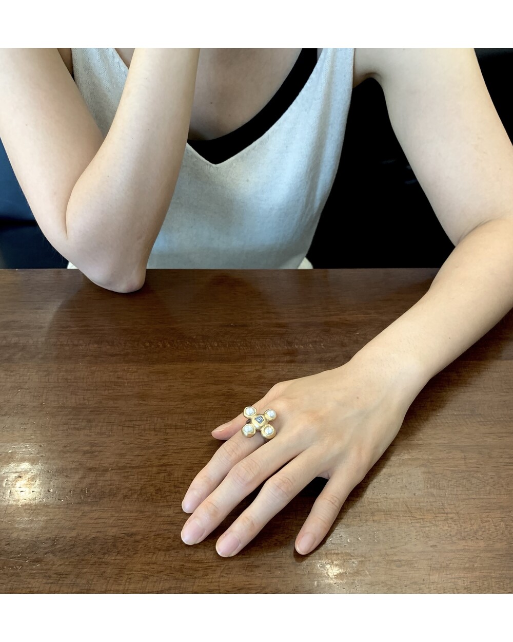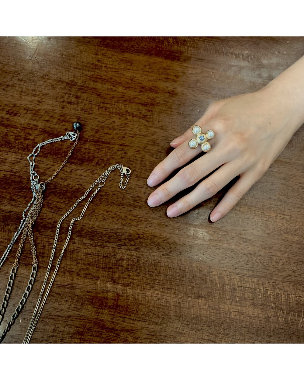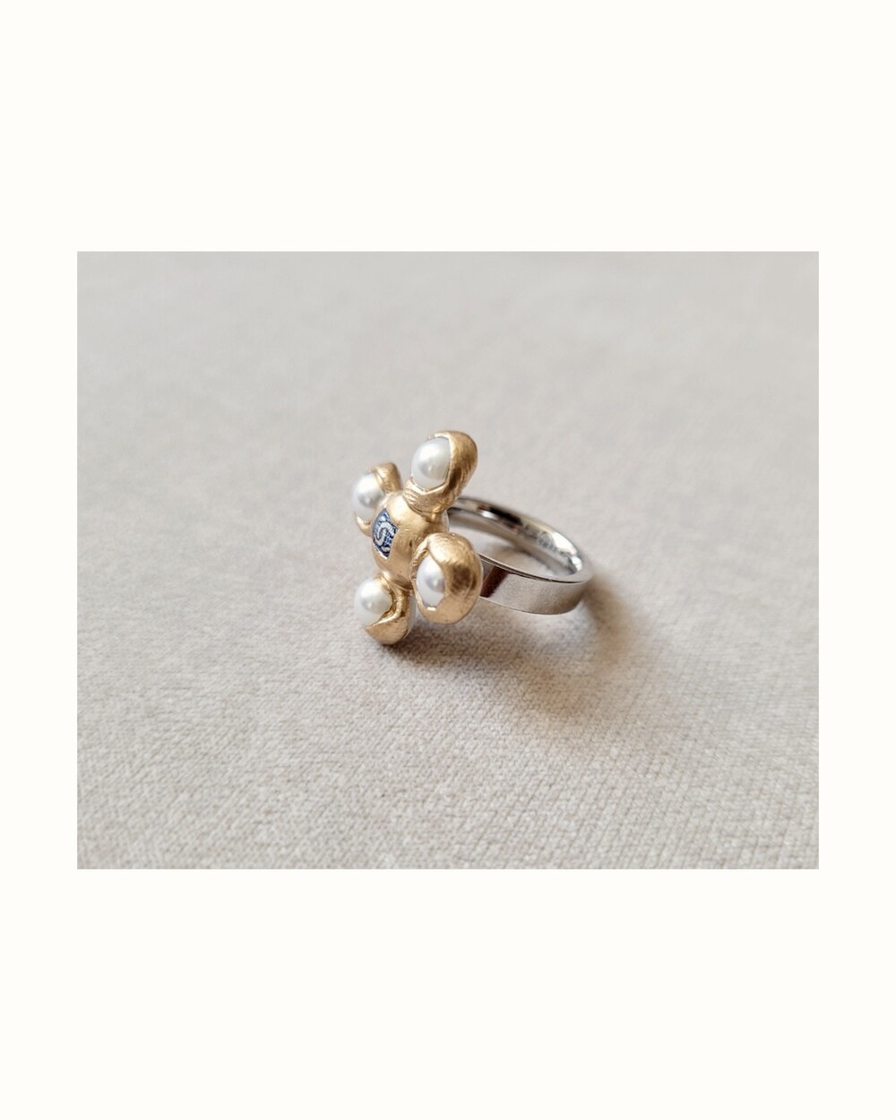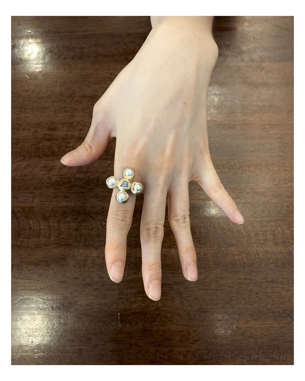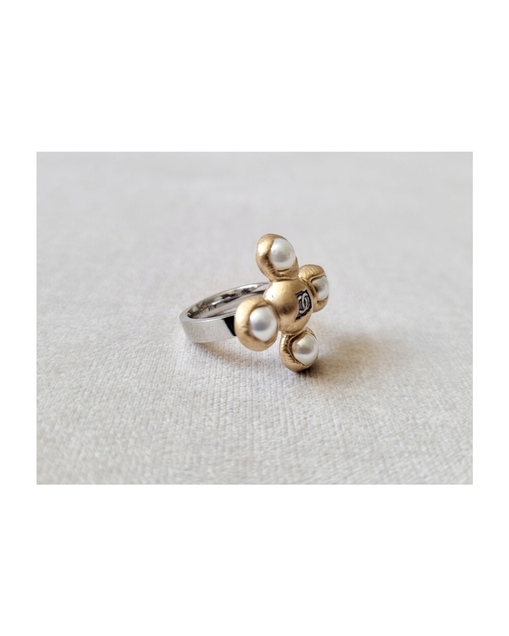 CHANEL blue CC pearl ring no.35