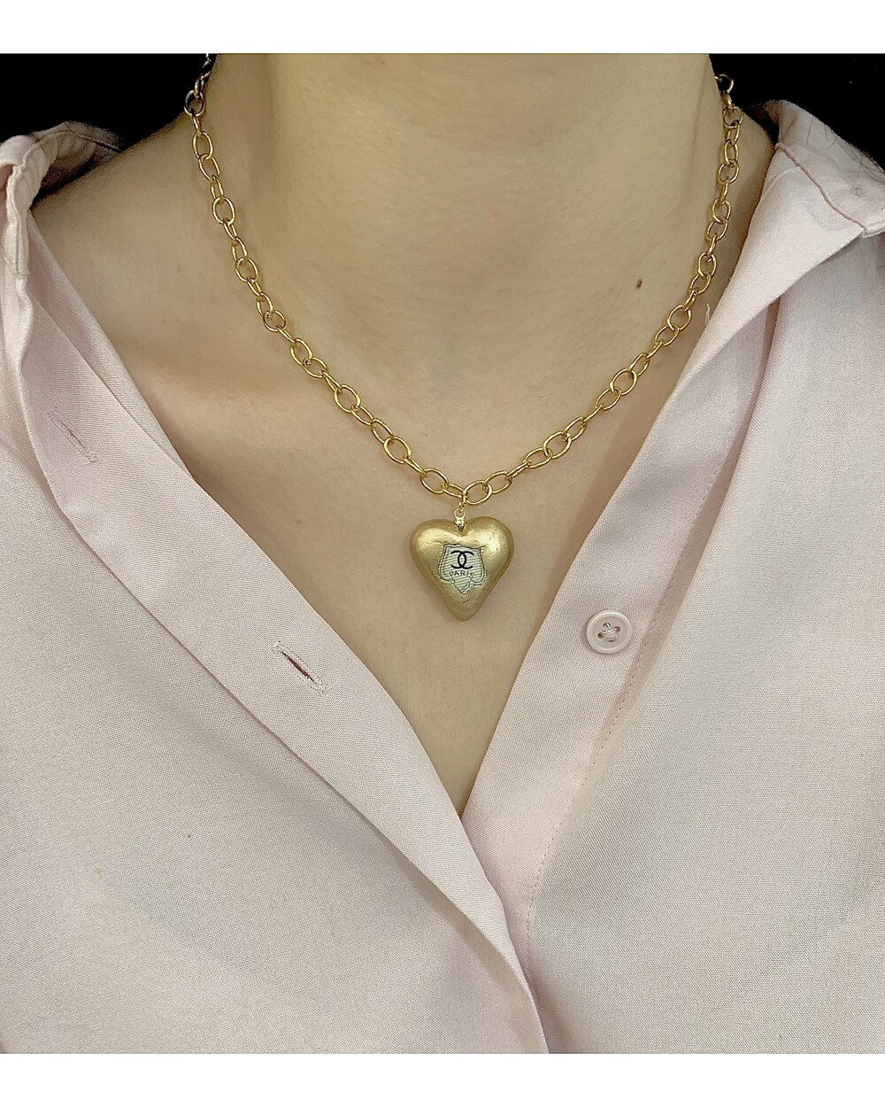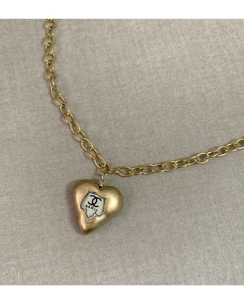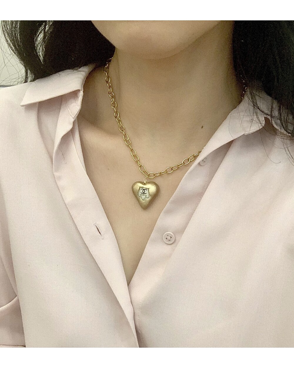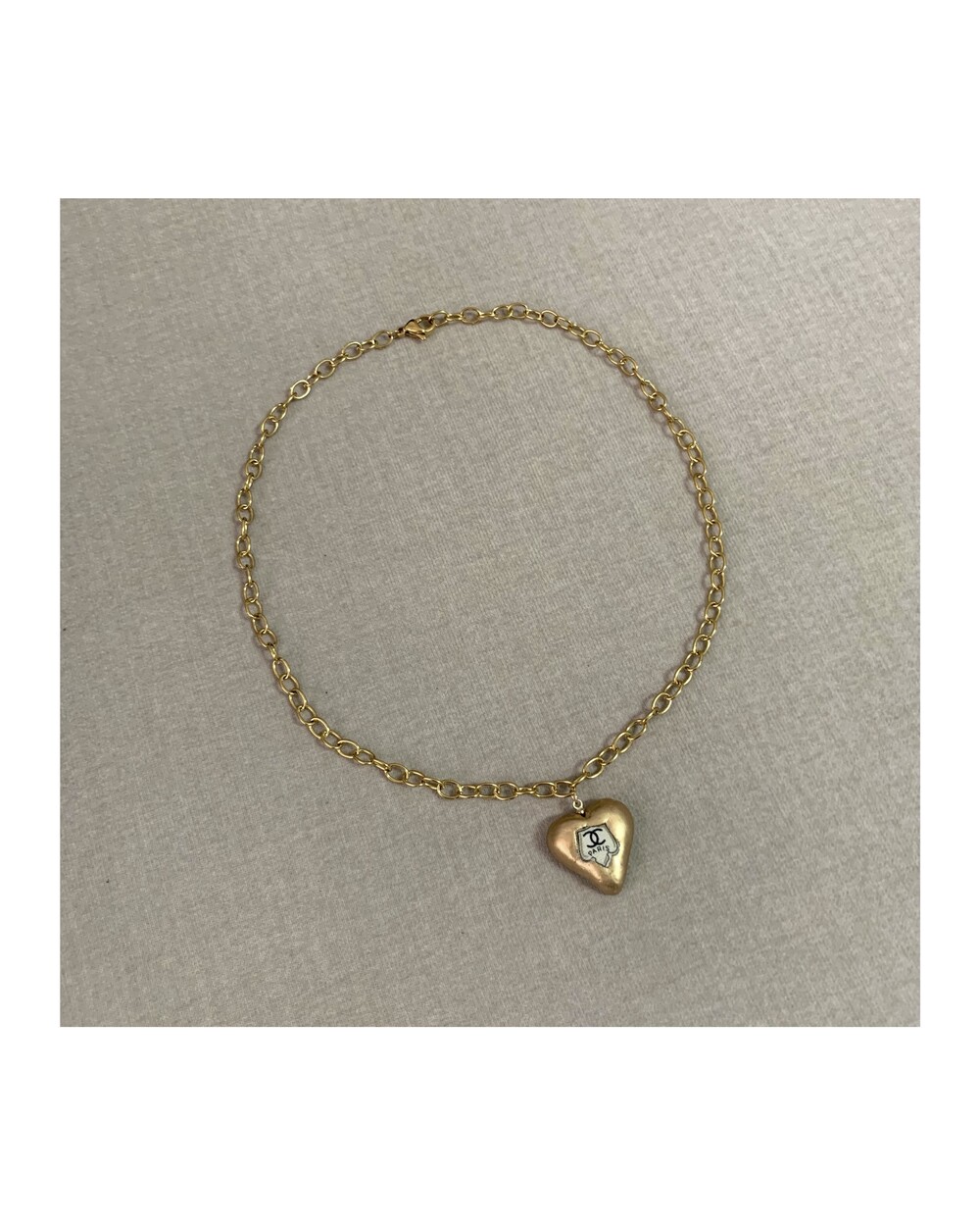 CHANEL gold heart silk button necklace no.36