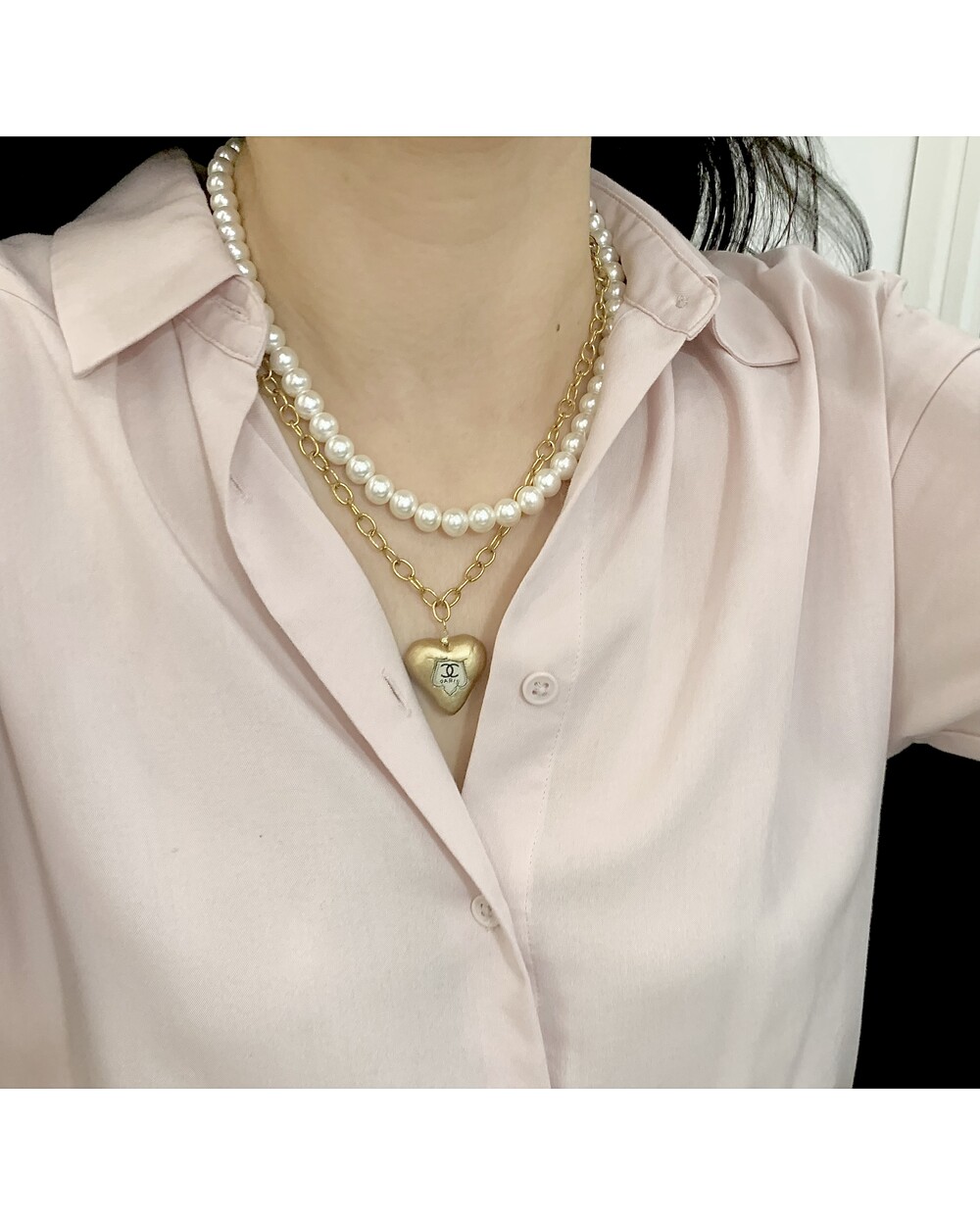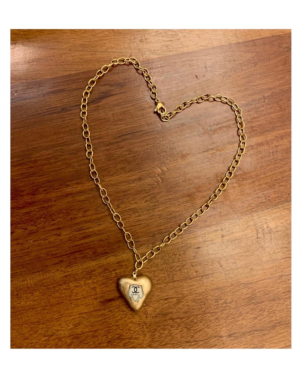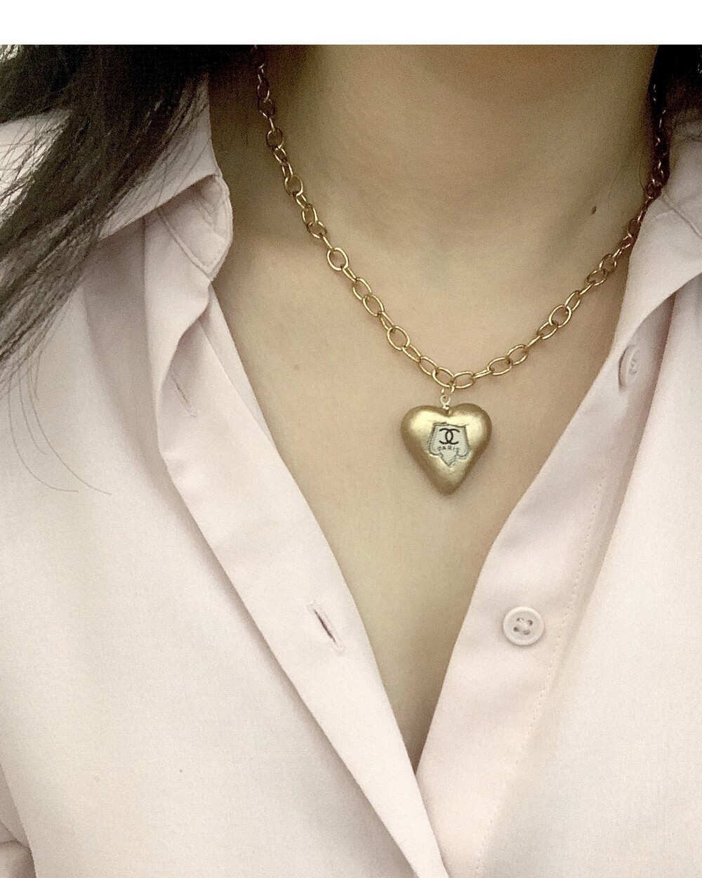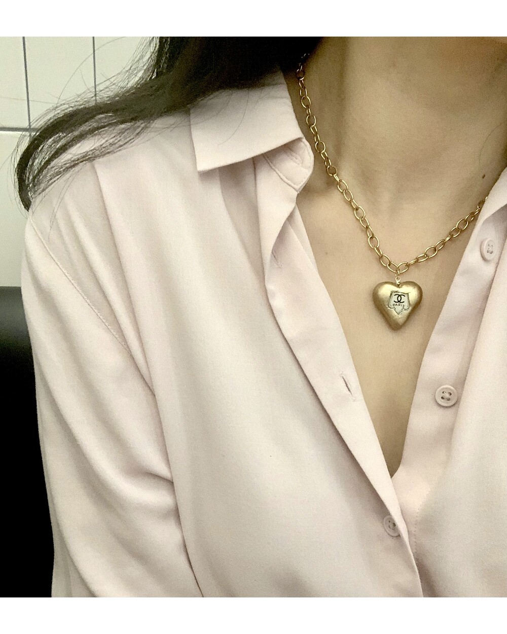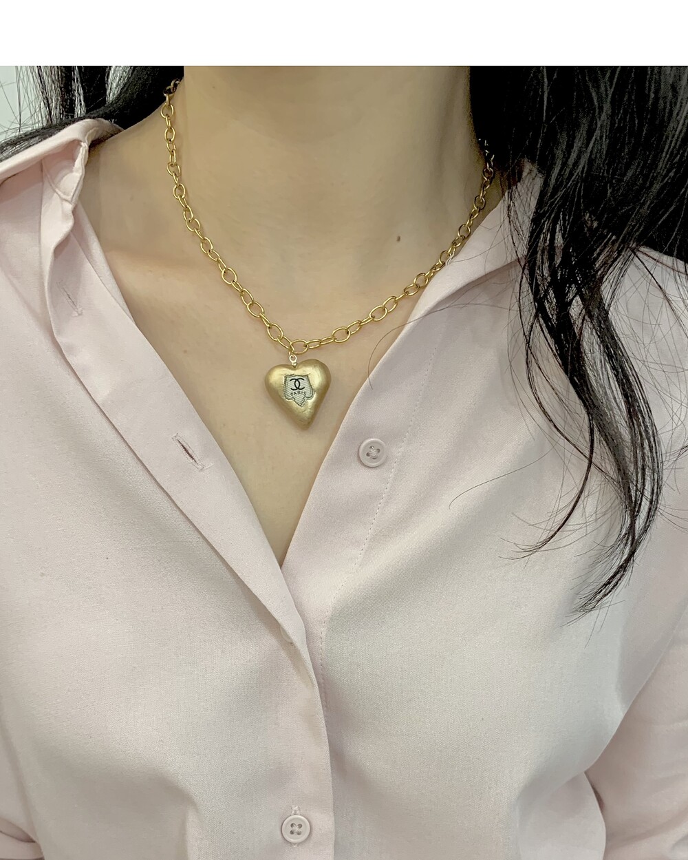 CHANEL gold heart silk button necklace no.36