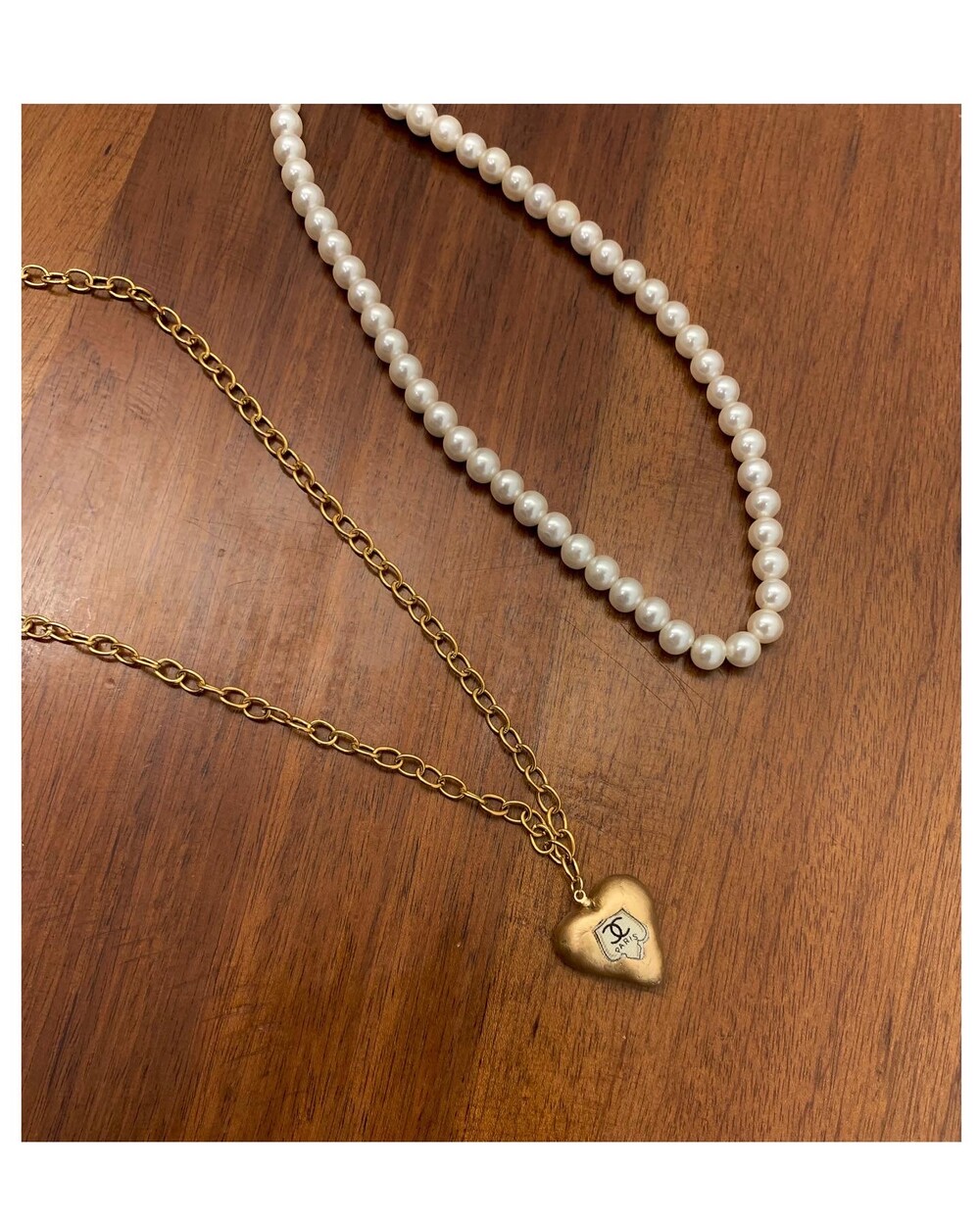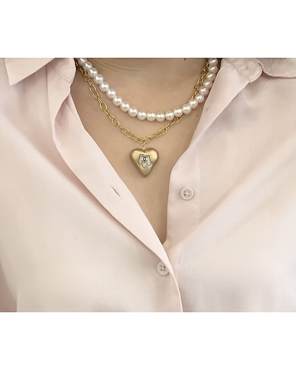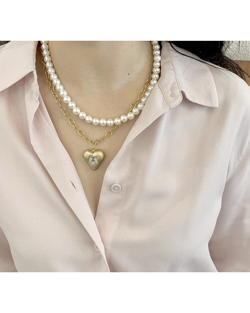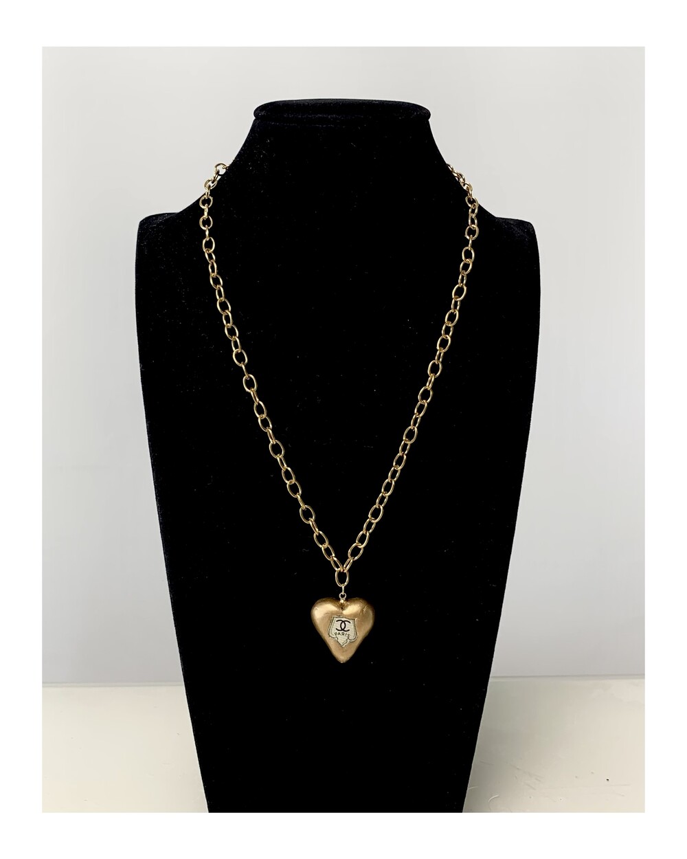 CHANEL gold heart silk button necklace no.36
