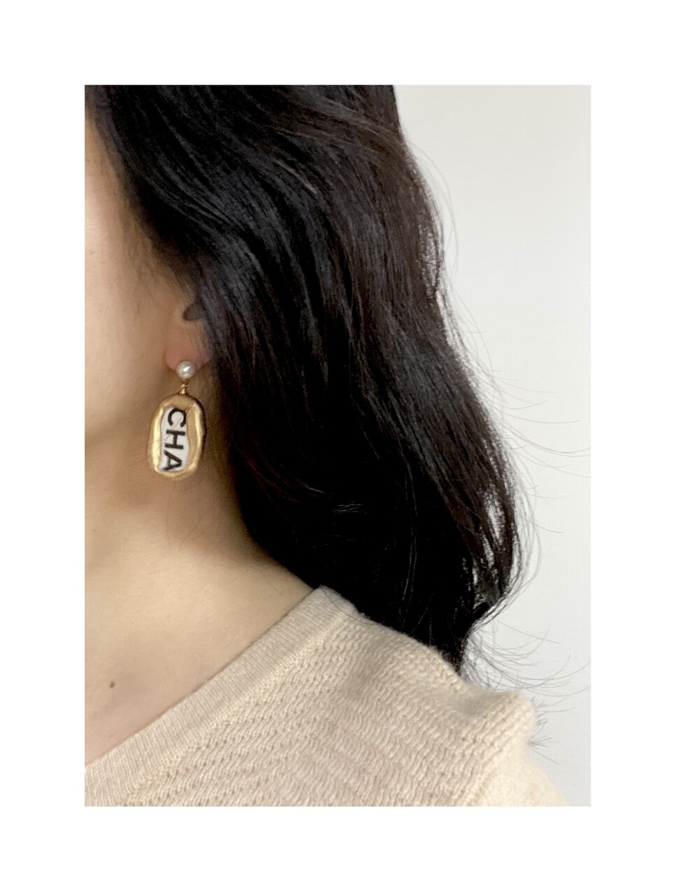 CHANEL ribbon CHA, NEL earring no.3