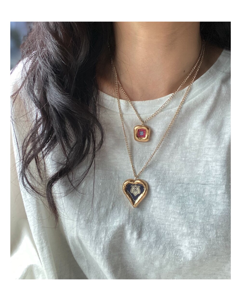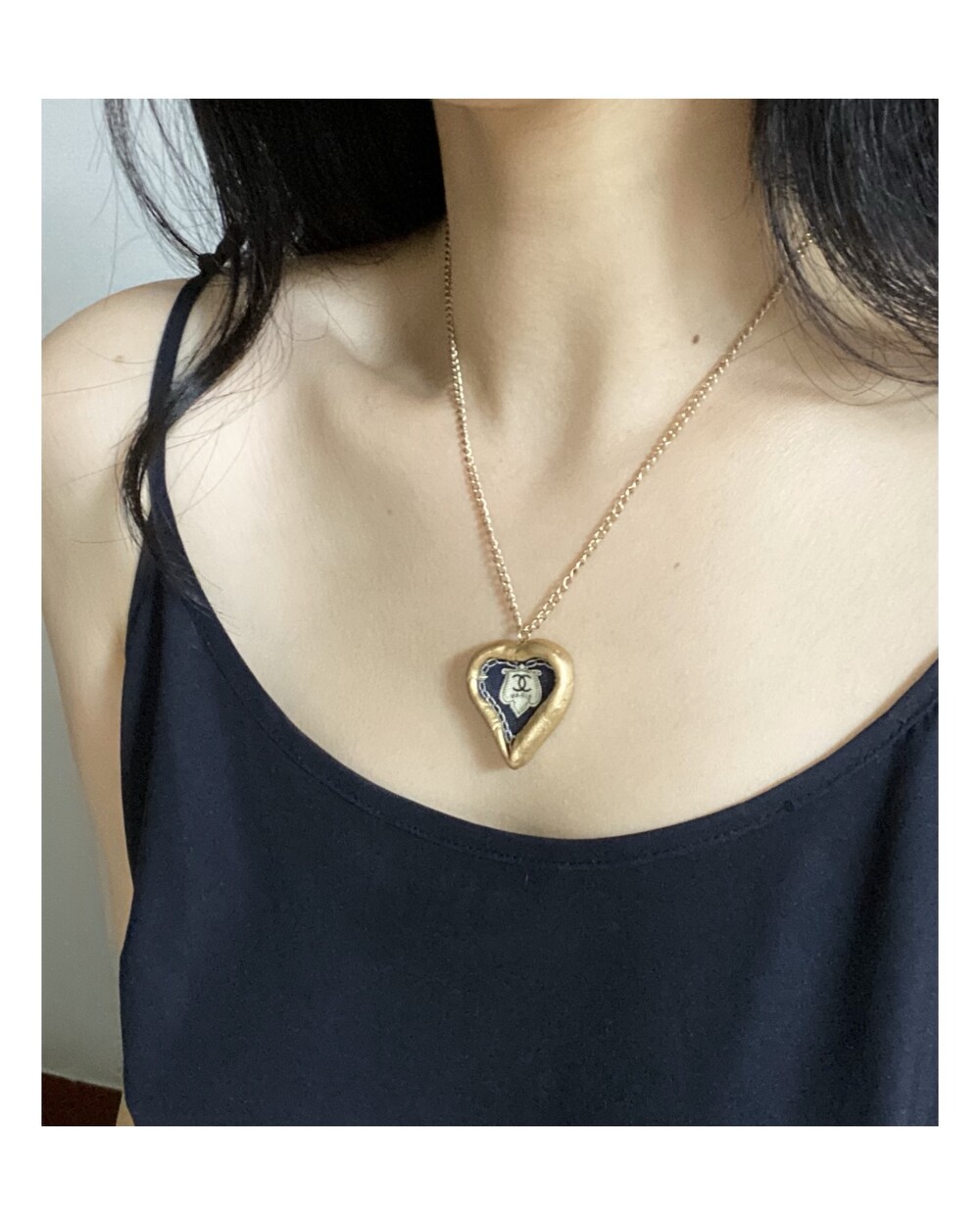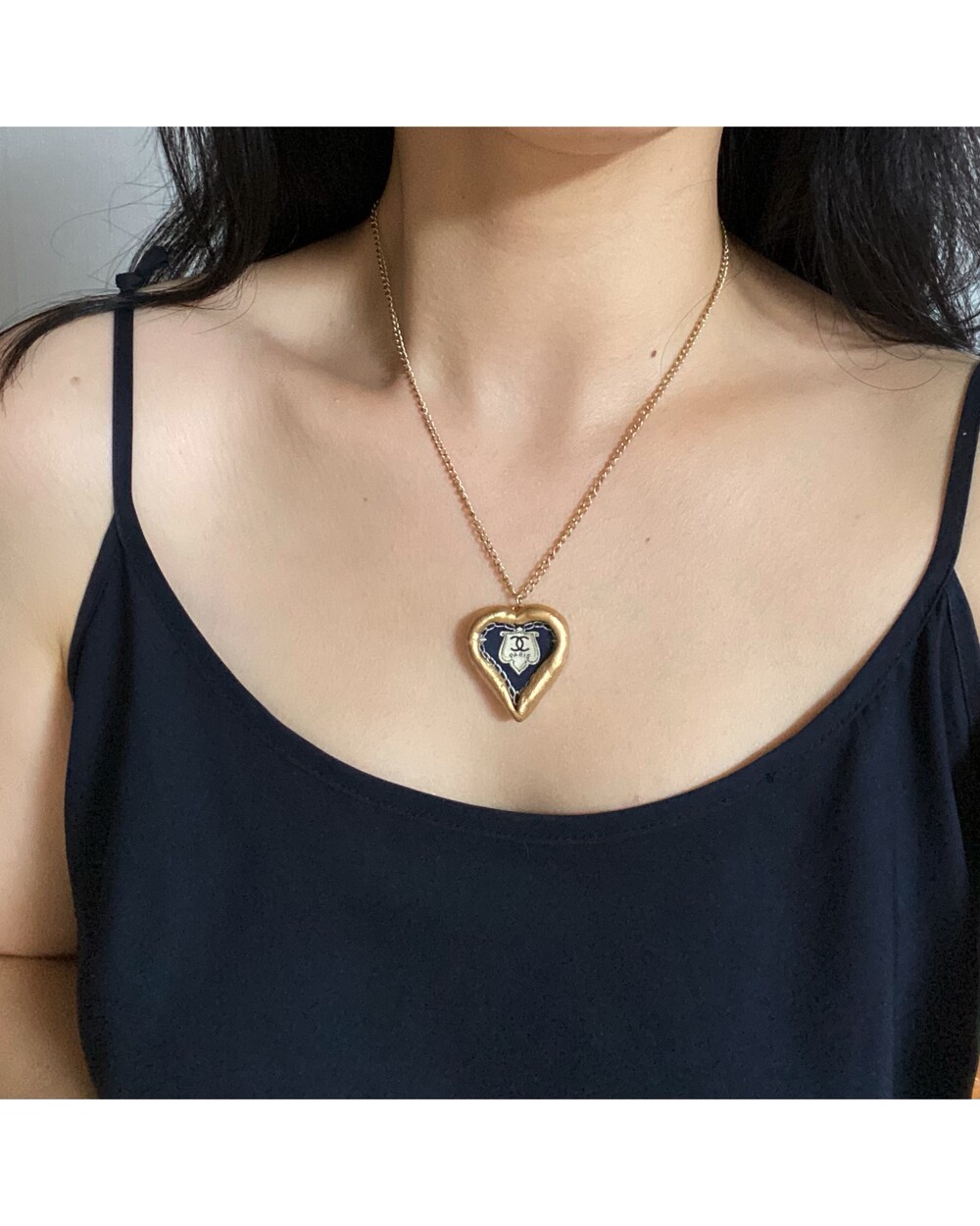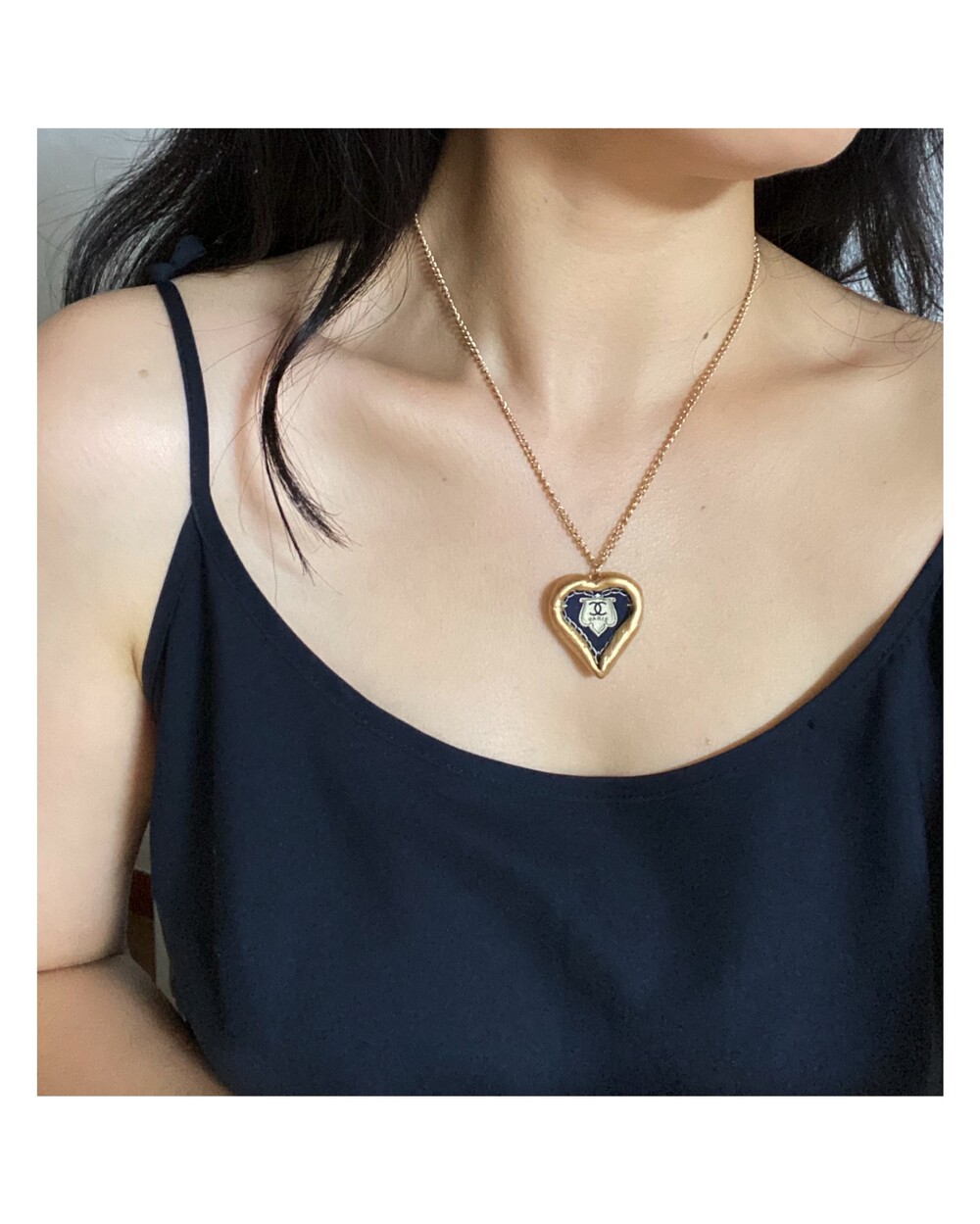 CHANEL navy heart silk CC necklace no.31