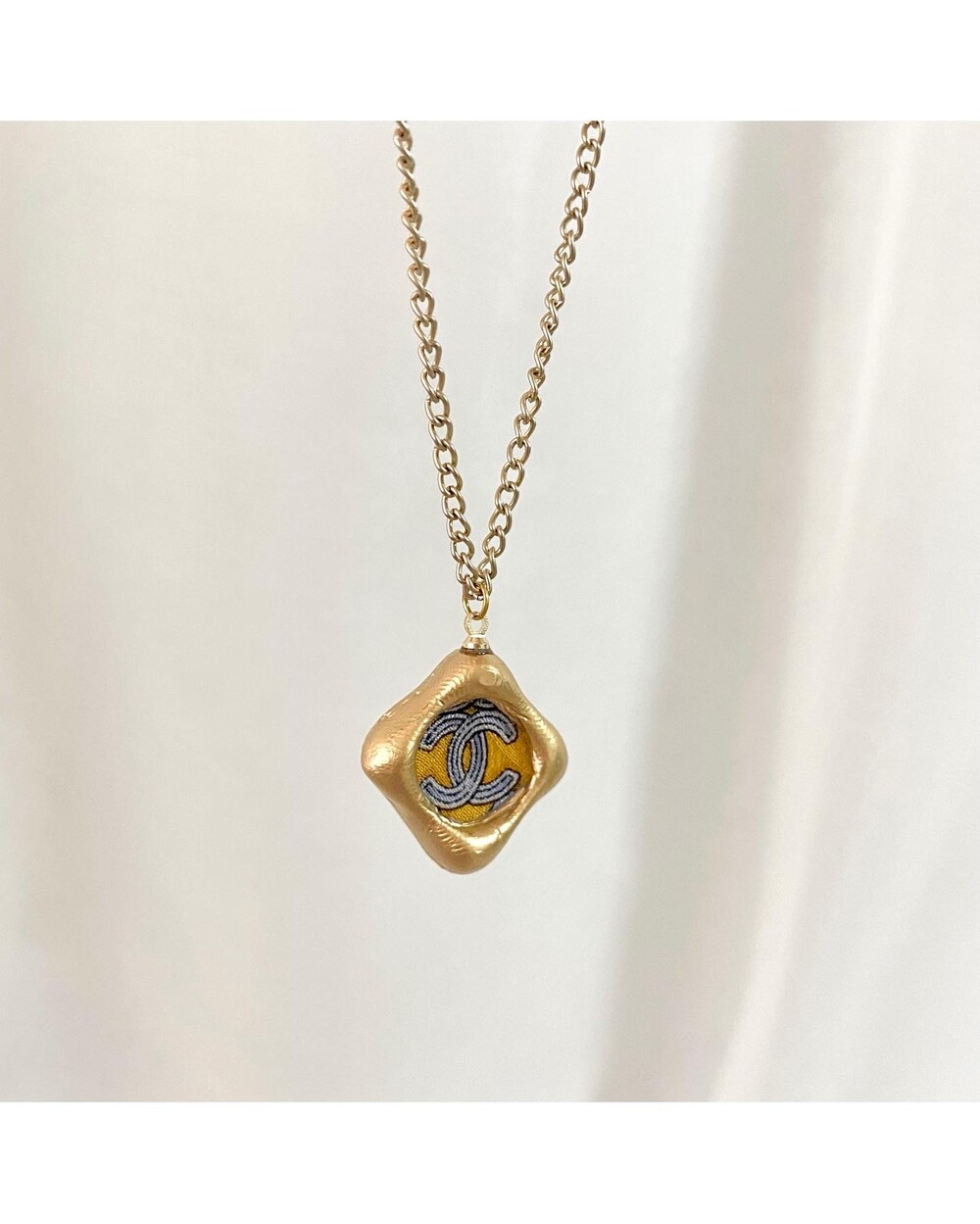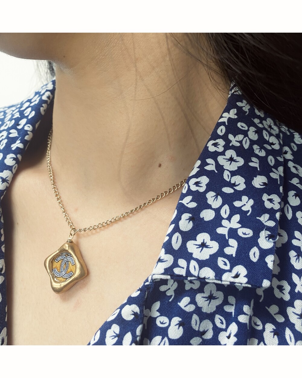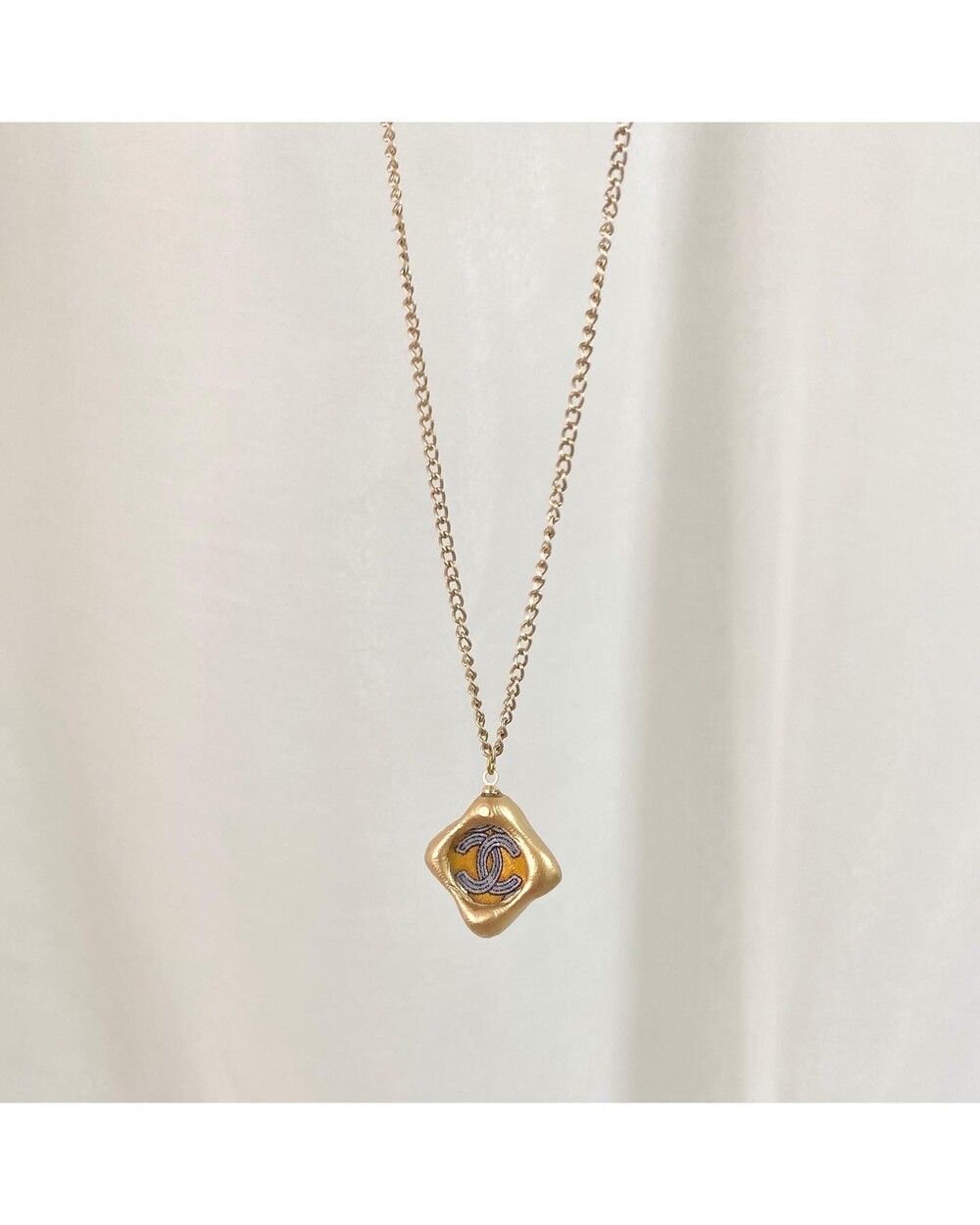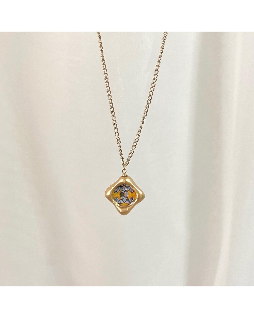 CHANEL blue CC silk button necklace no.32