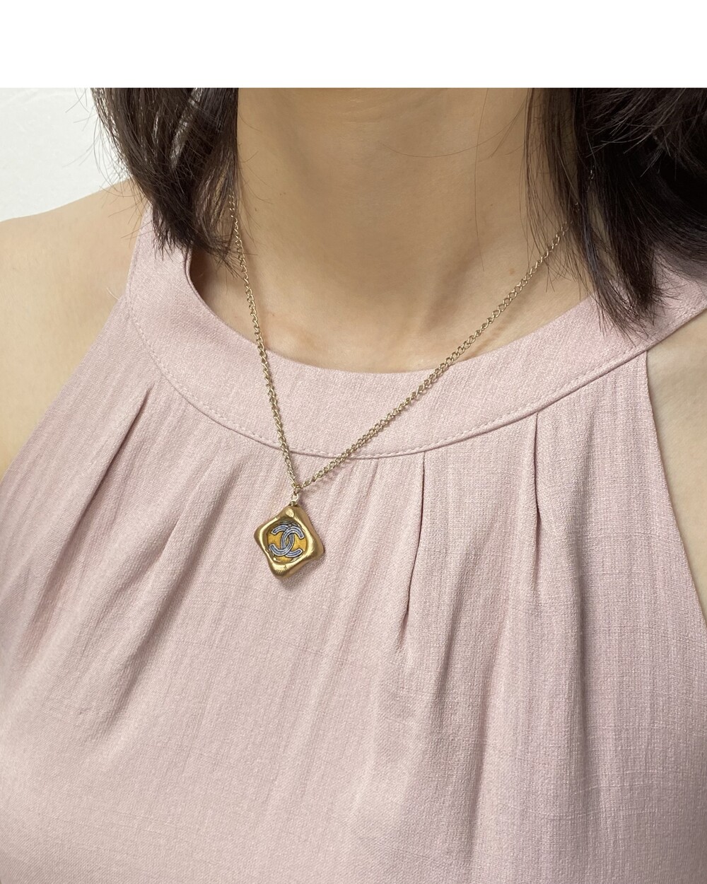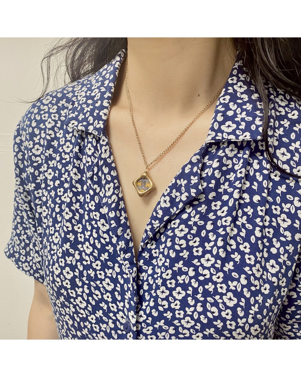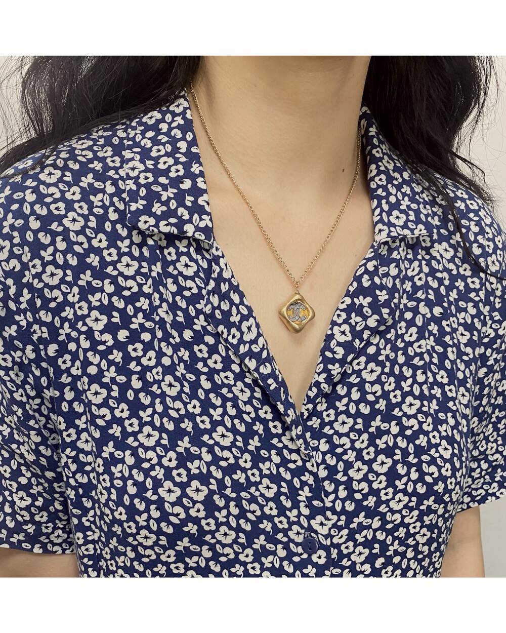 CHANEL blue CC silk button necklace no.32