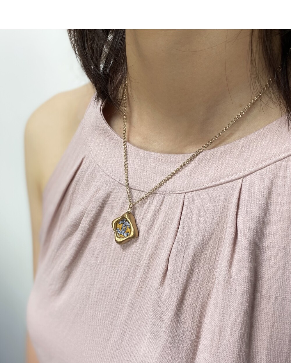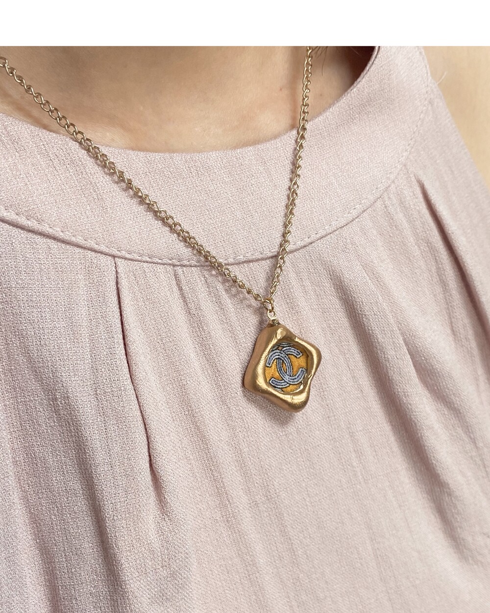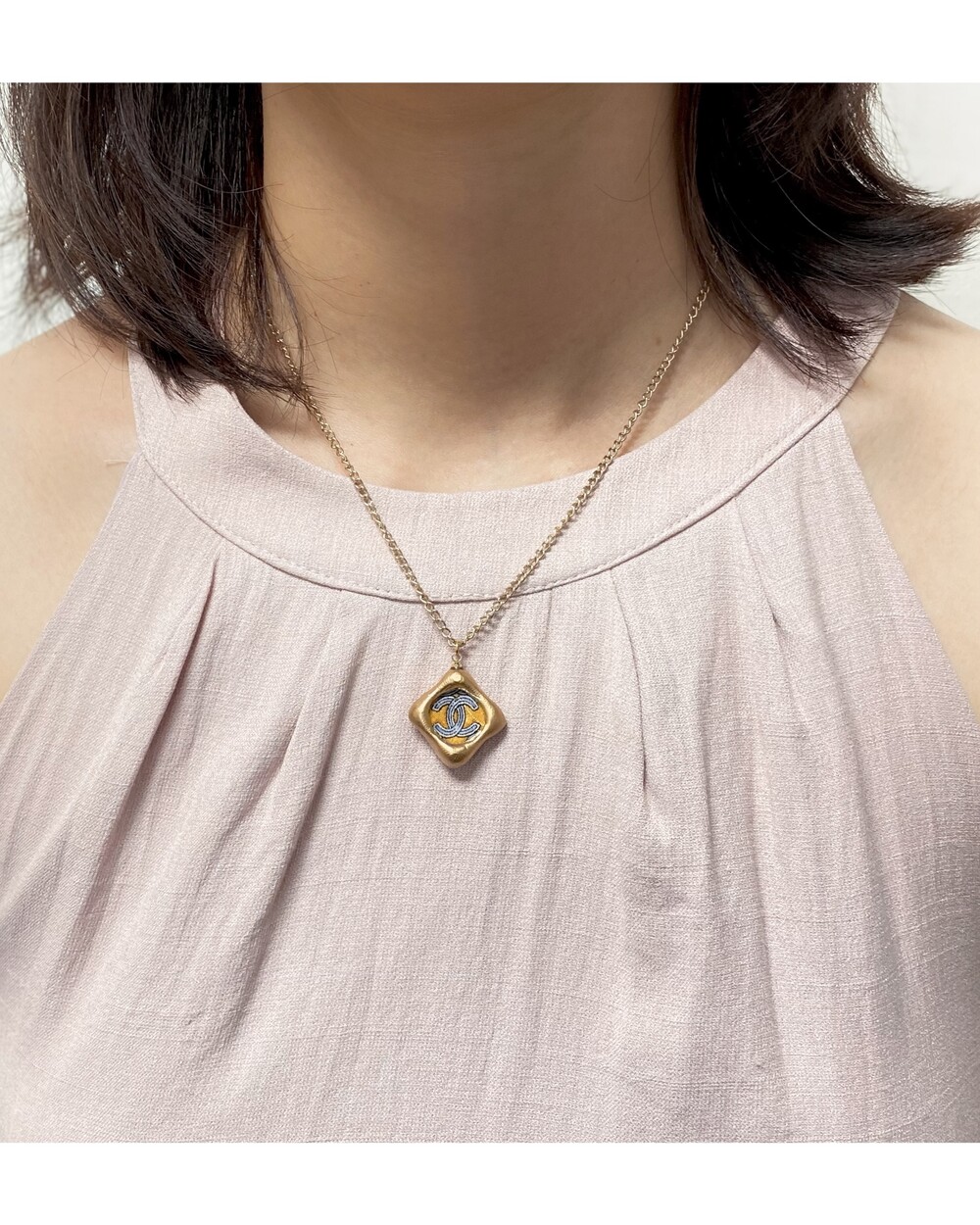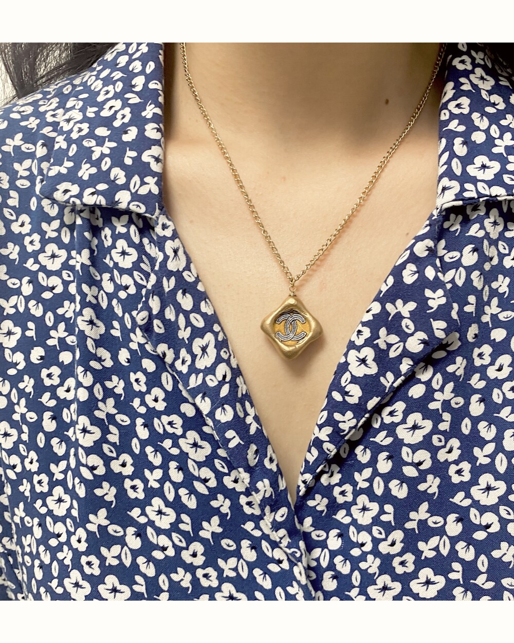 CHANEL blue CC silk button necklace no.32