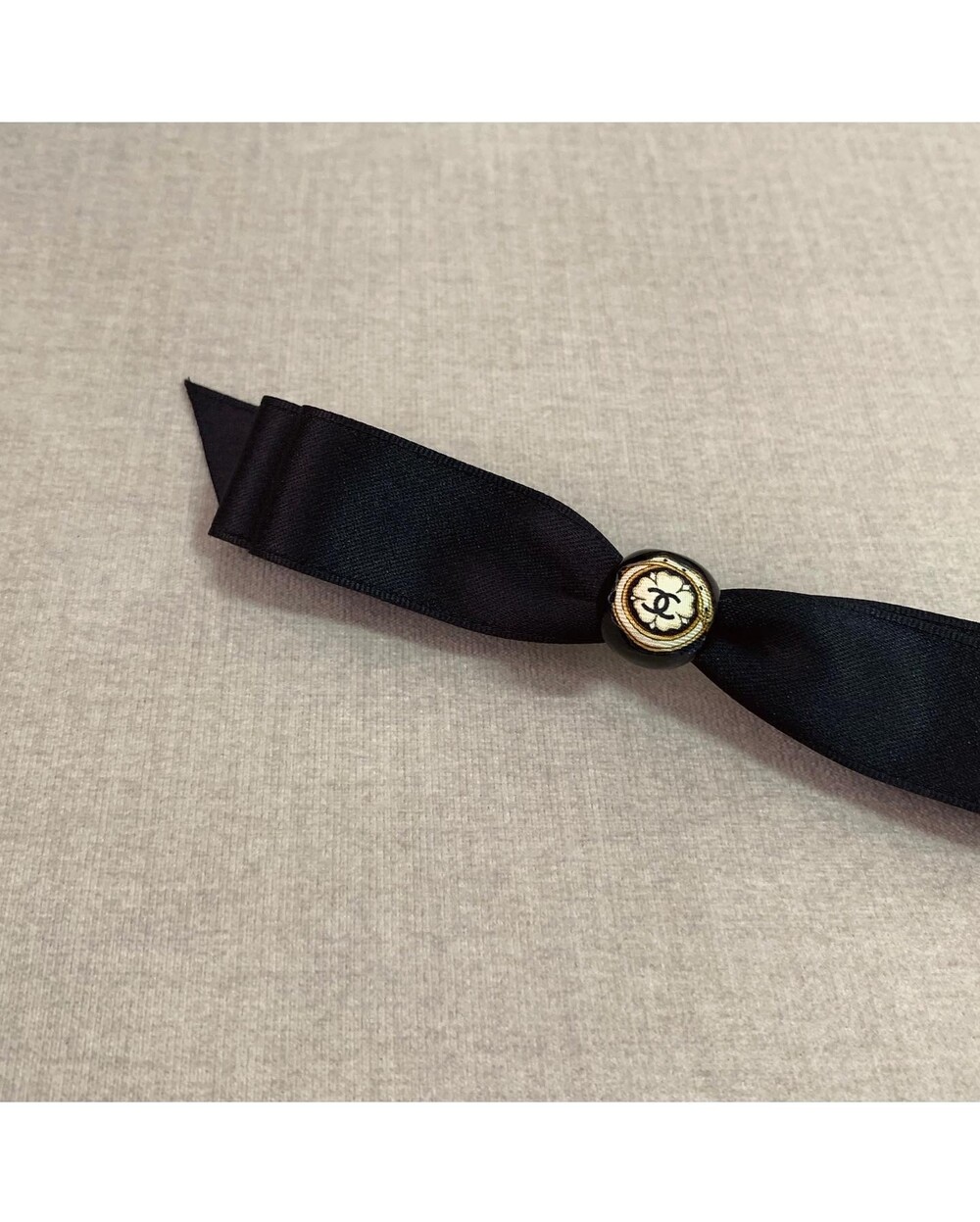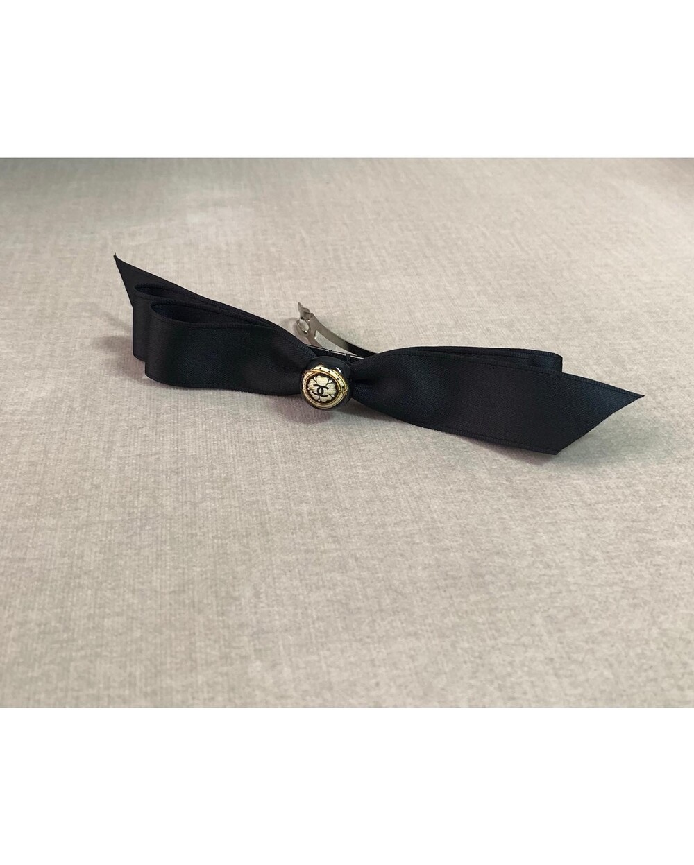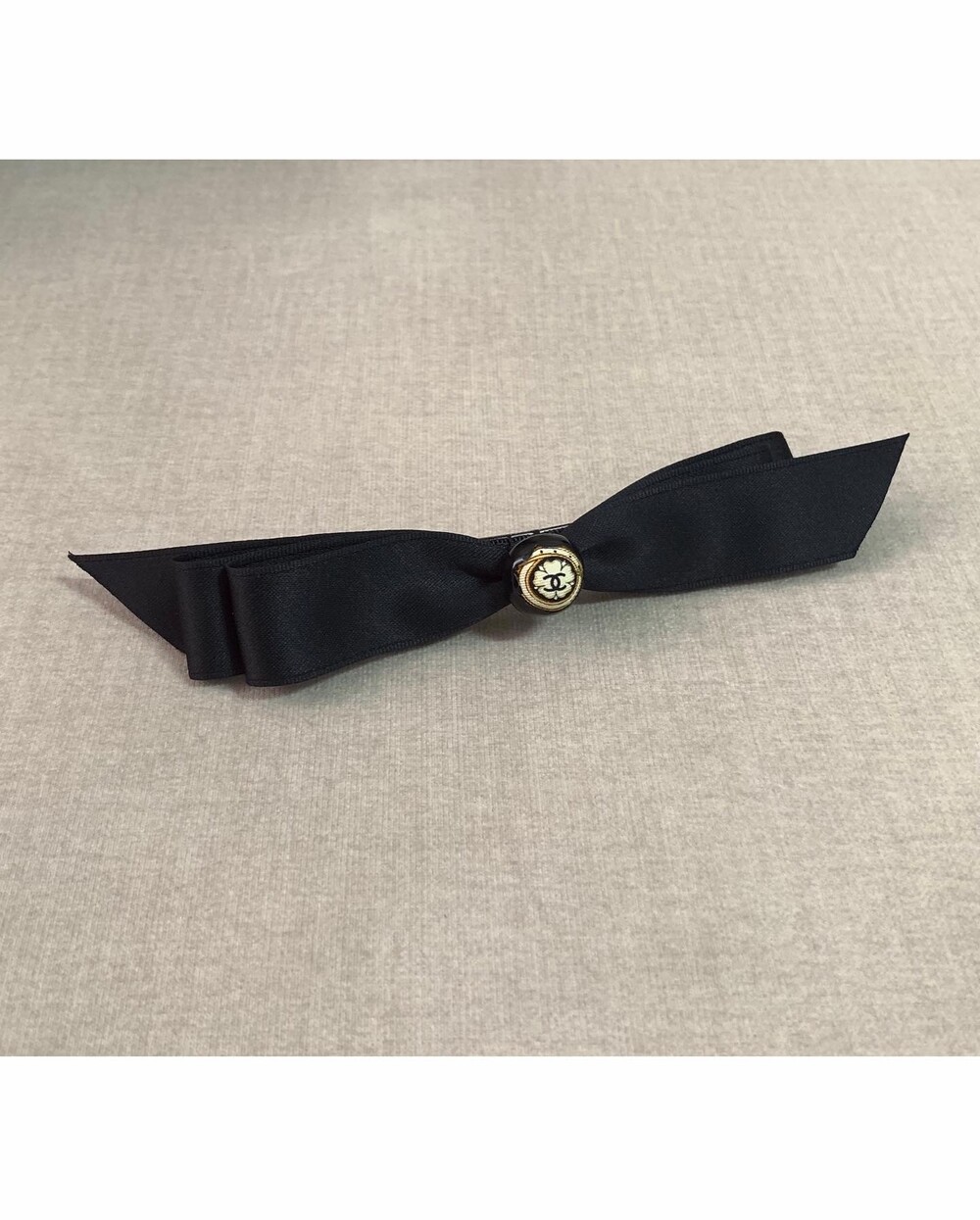CHANEL gold silkbutton ribbon hairclip no.17