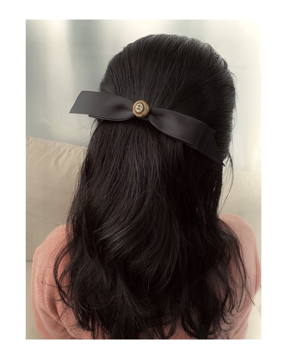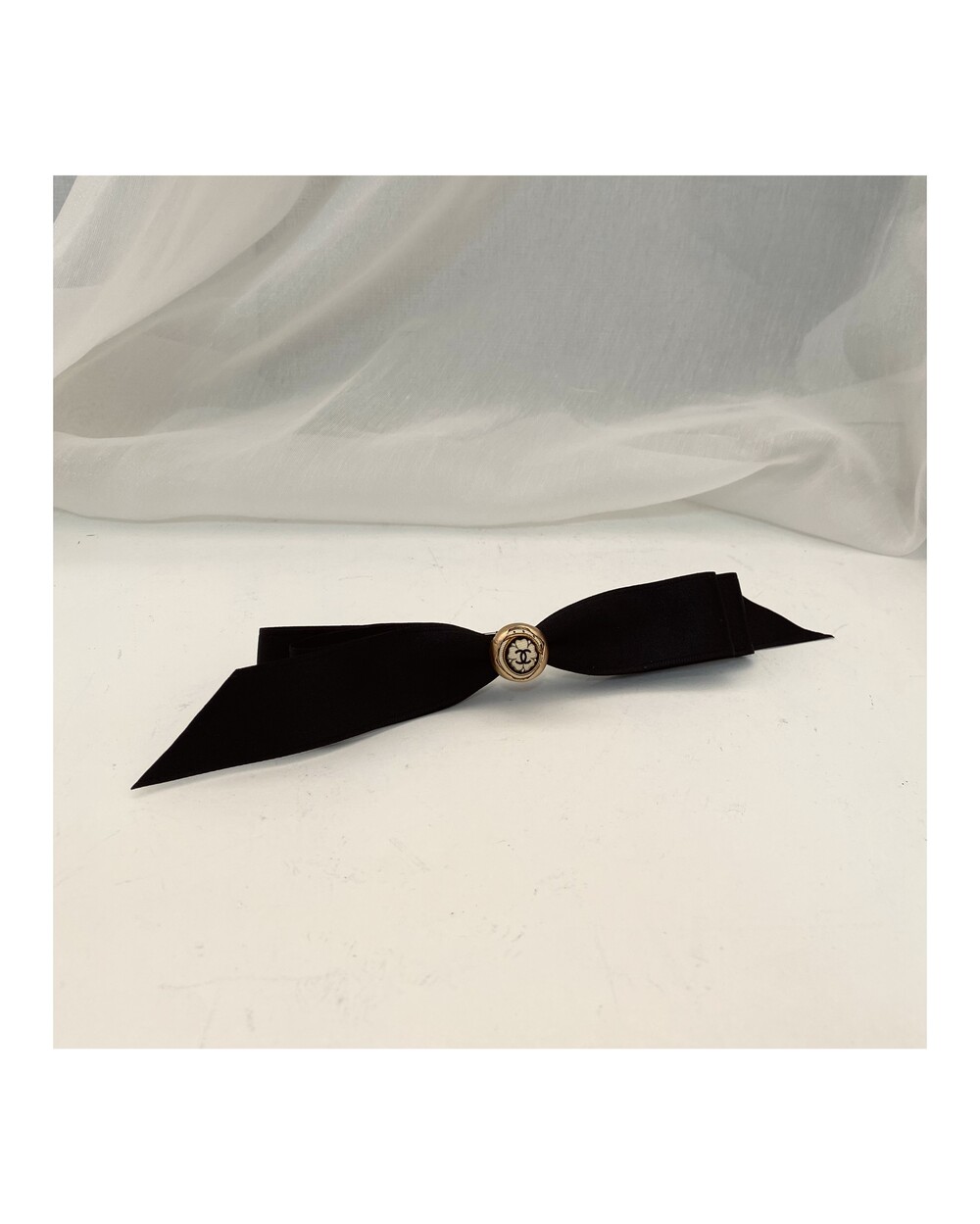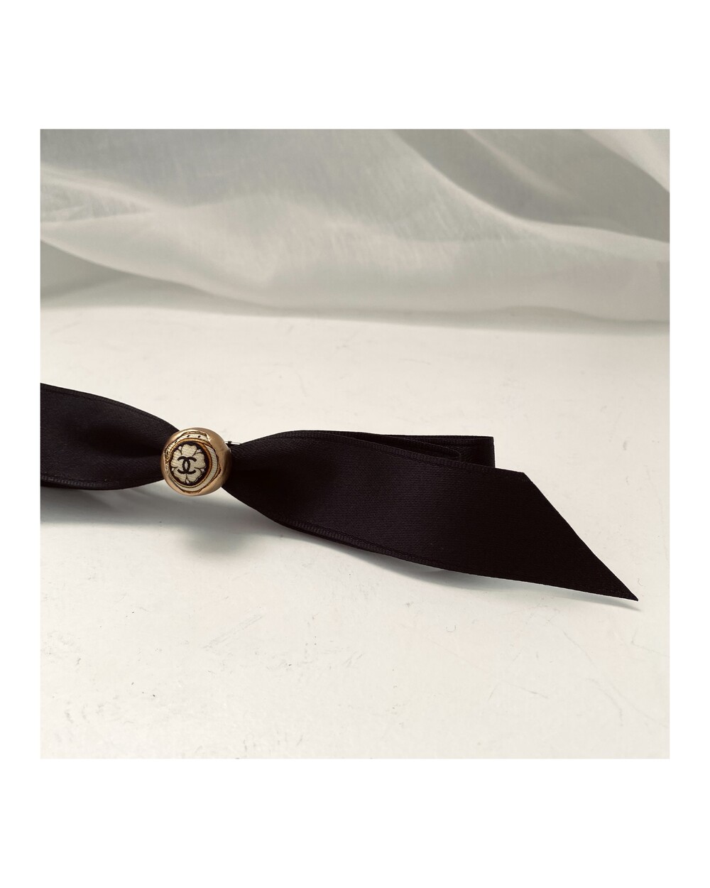 CHANEL gold silkbutton ribbon hairclip no.17