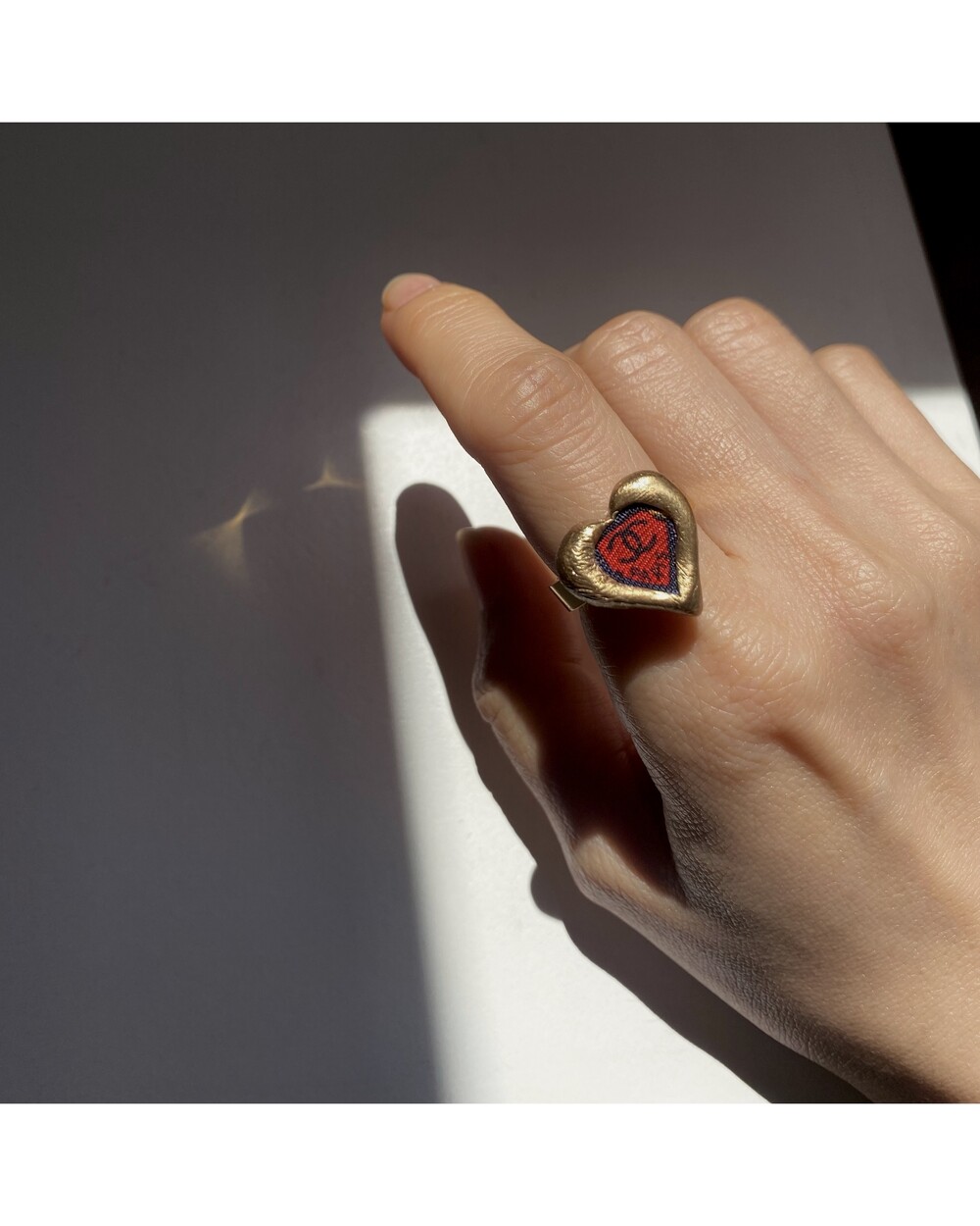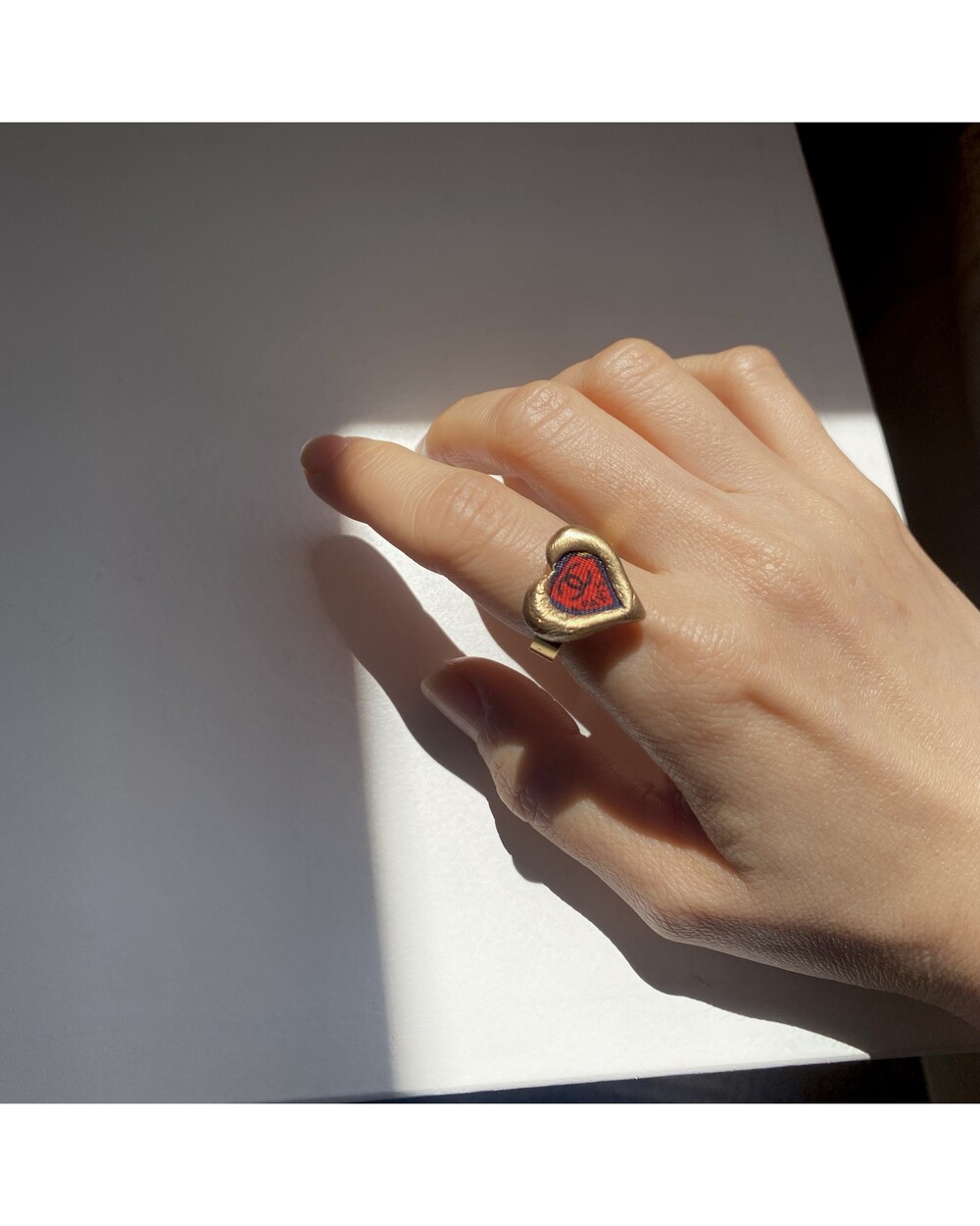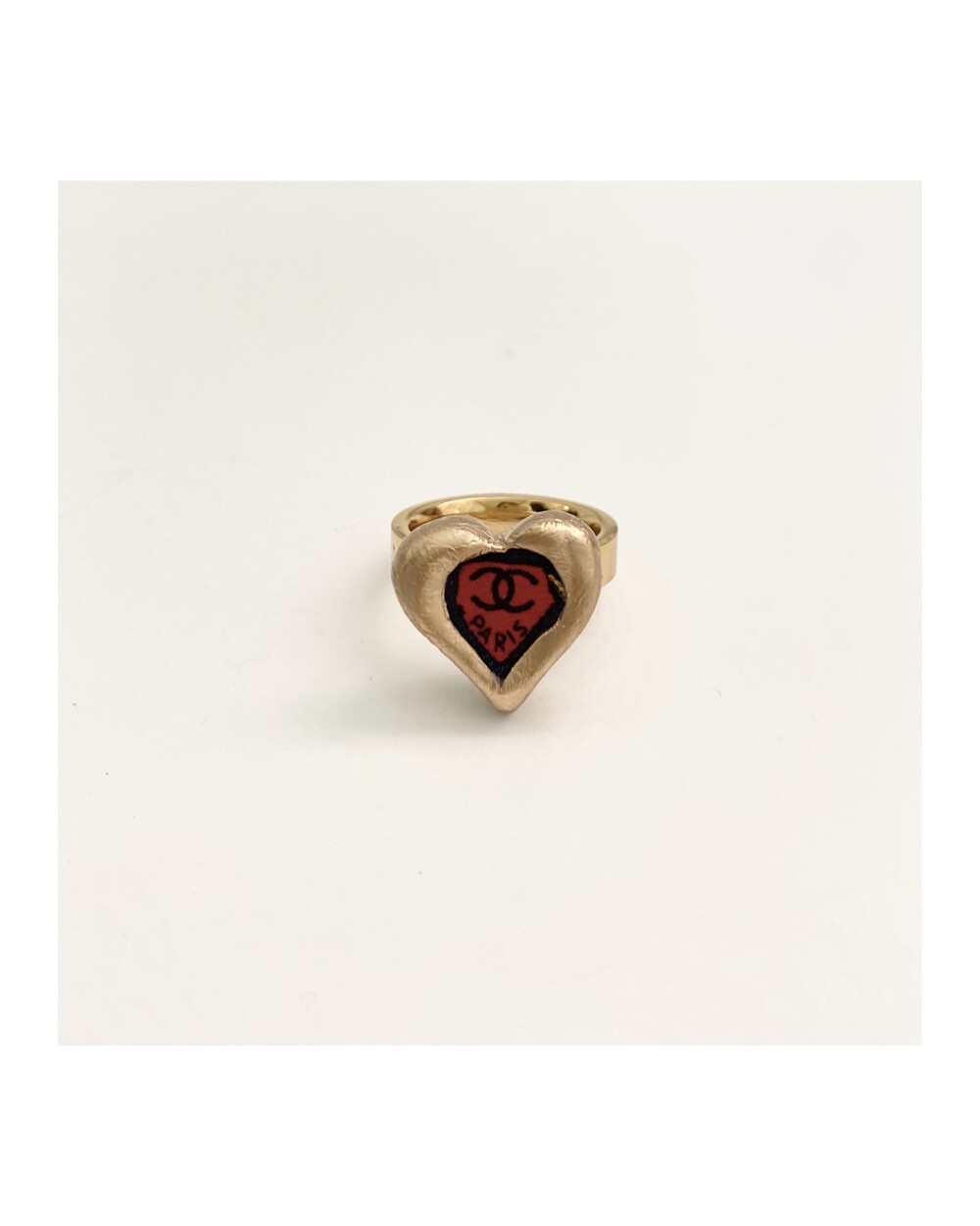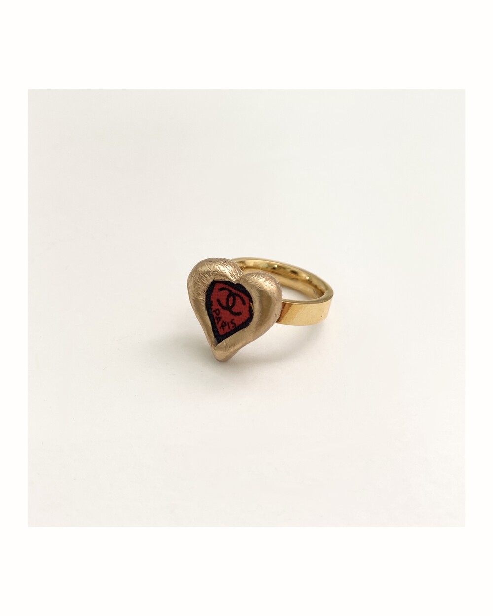 CHANEL red CC heart ring no.25