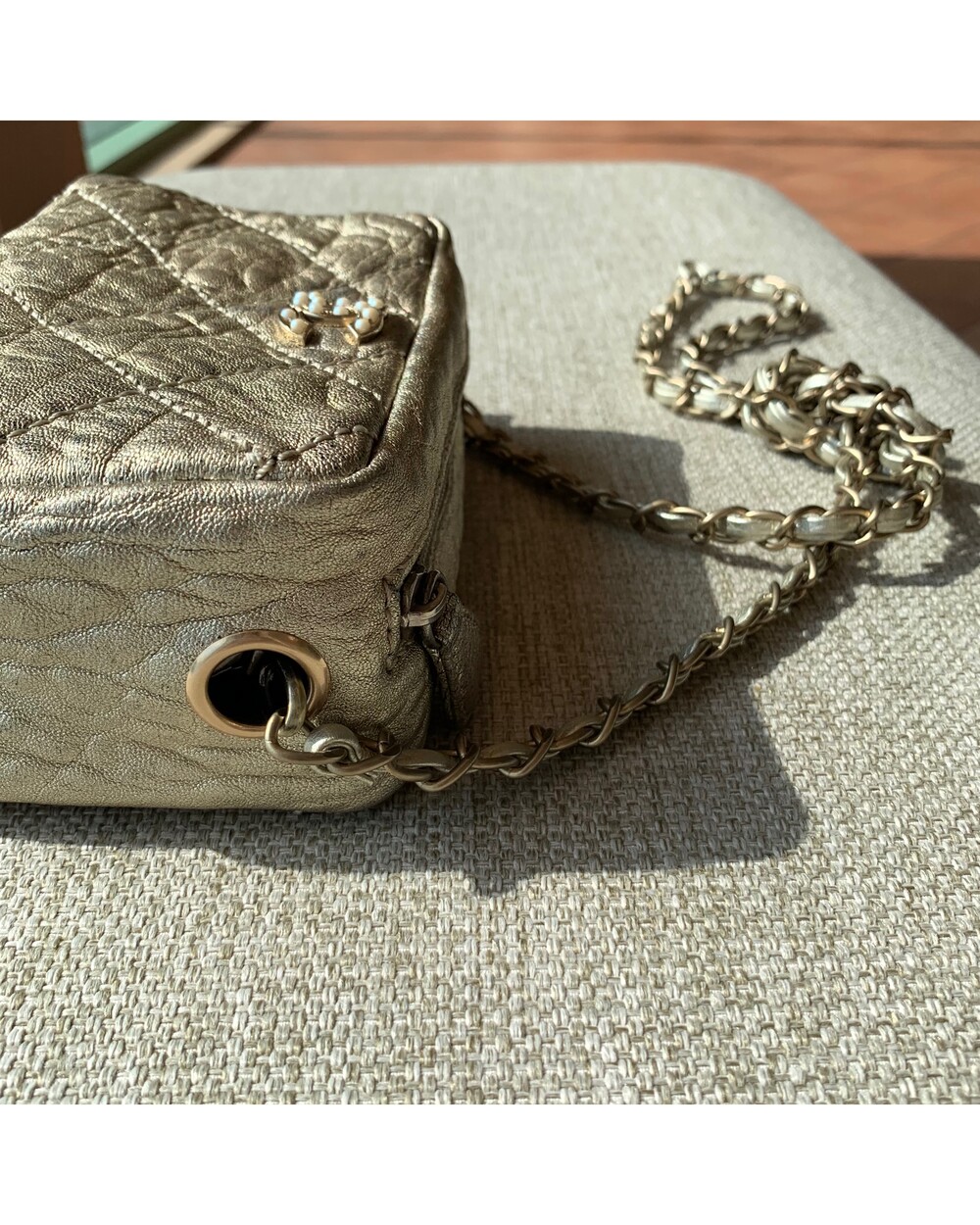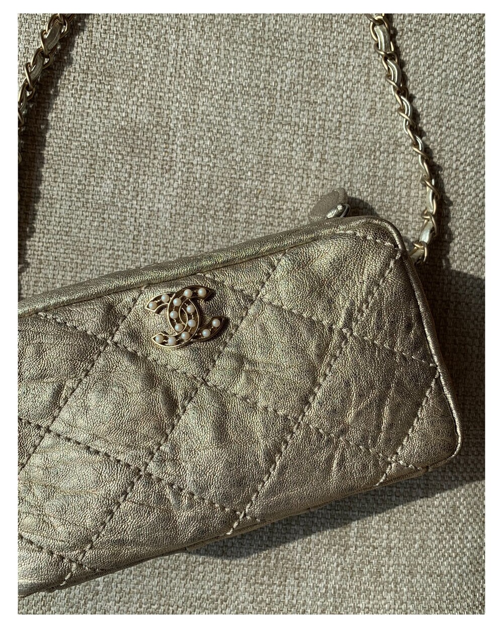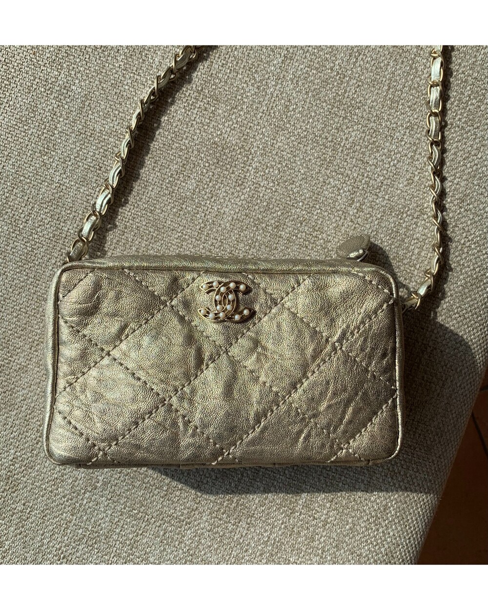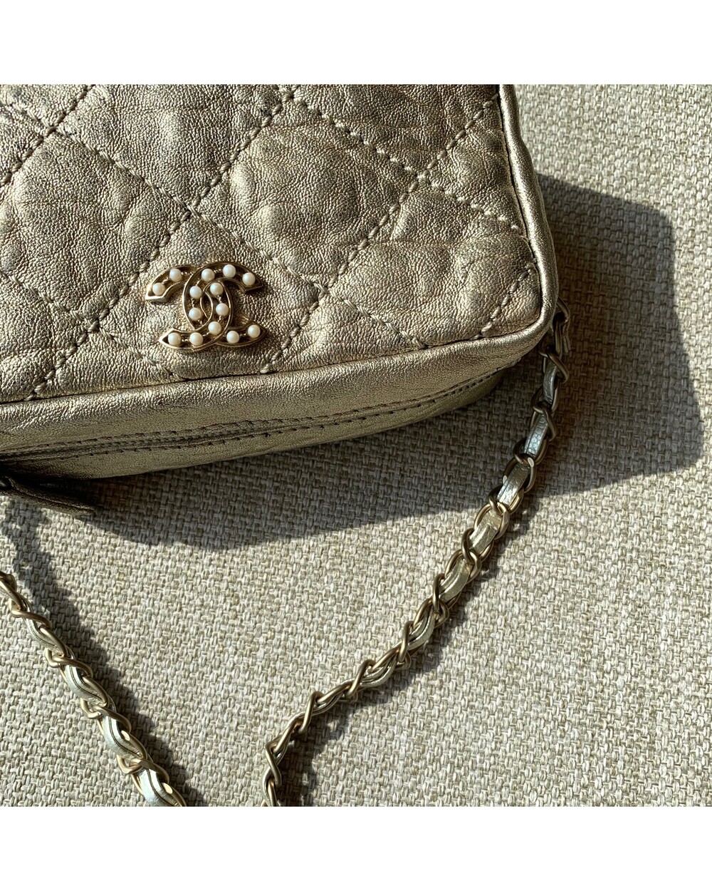 CHANEL gold quilting pearl CC camera bag no.46