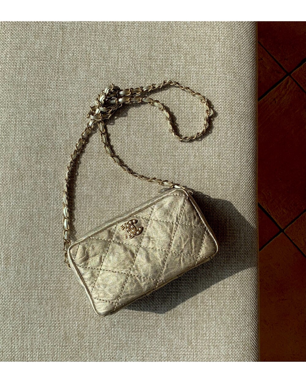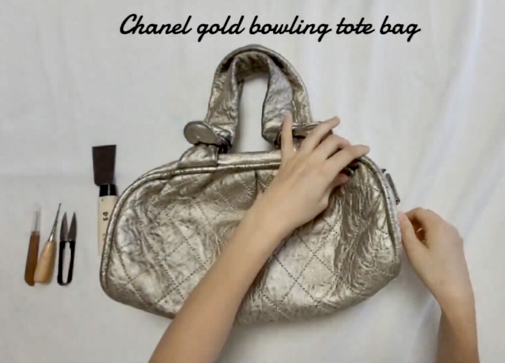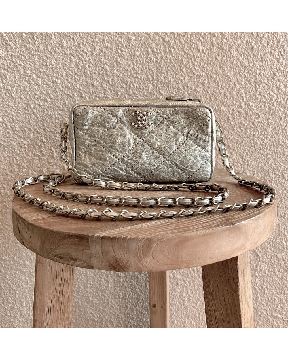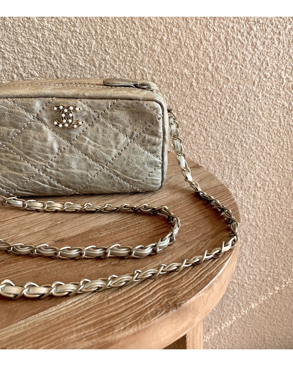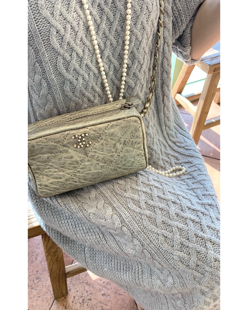 CHANEL gold quilting pearl CC camera bag no.46