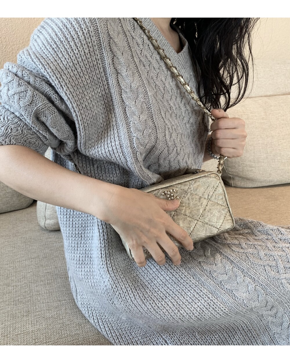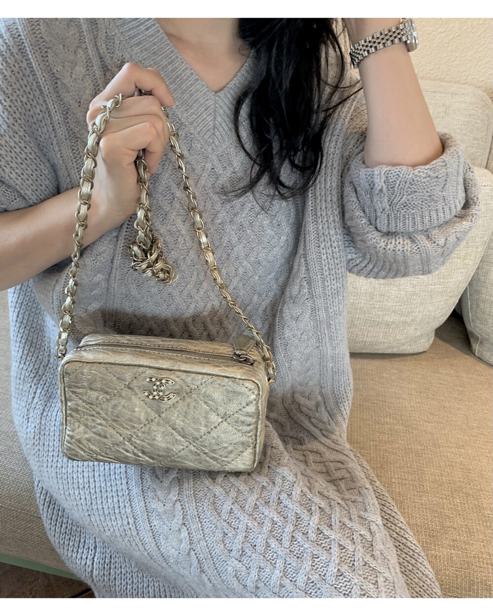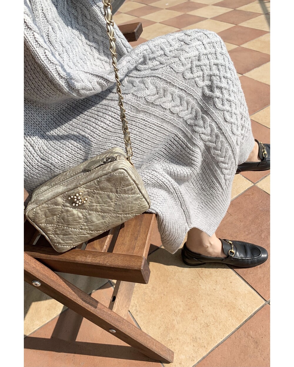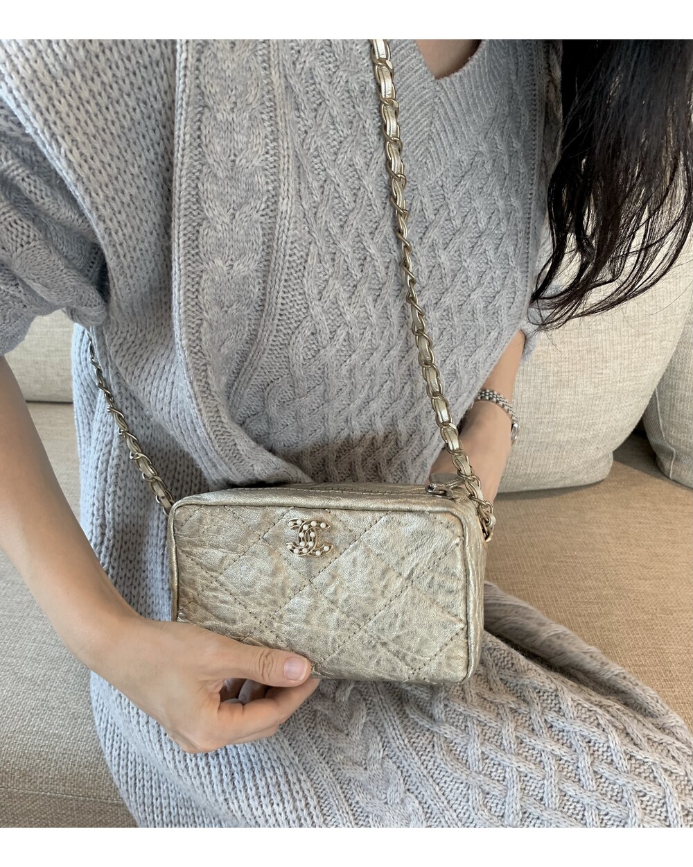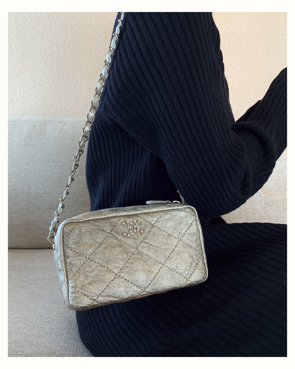 CHANEL gold quilting pearl CC camera bag no.46