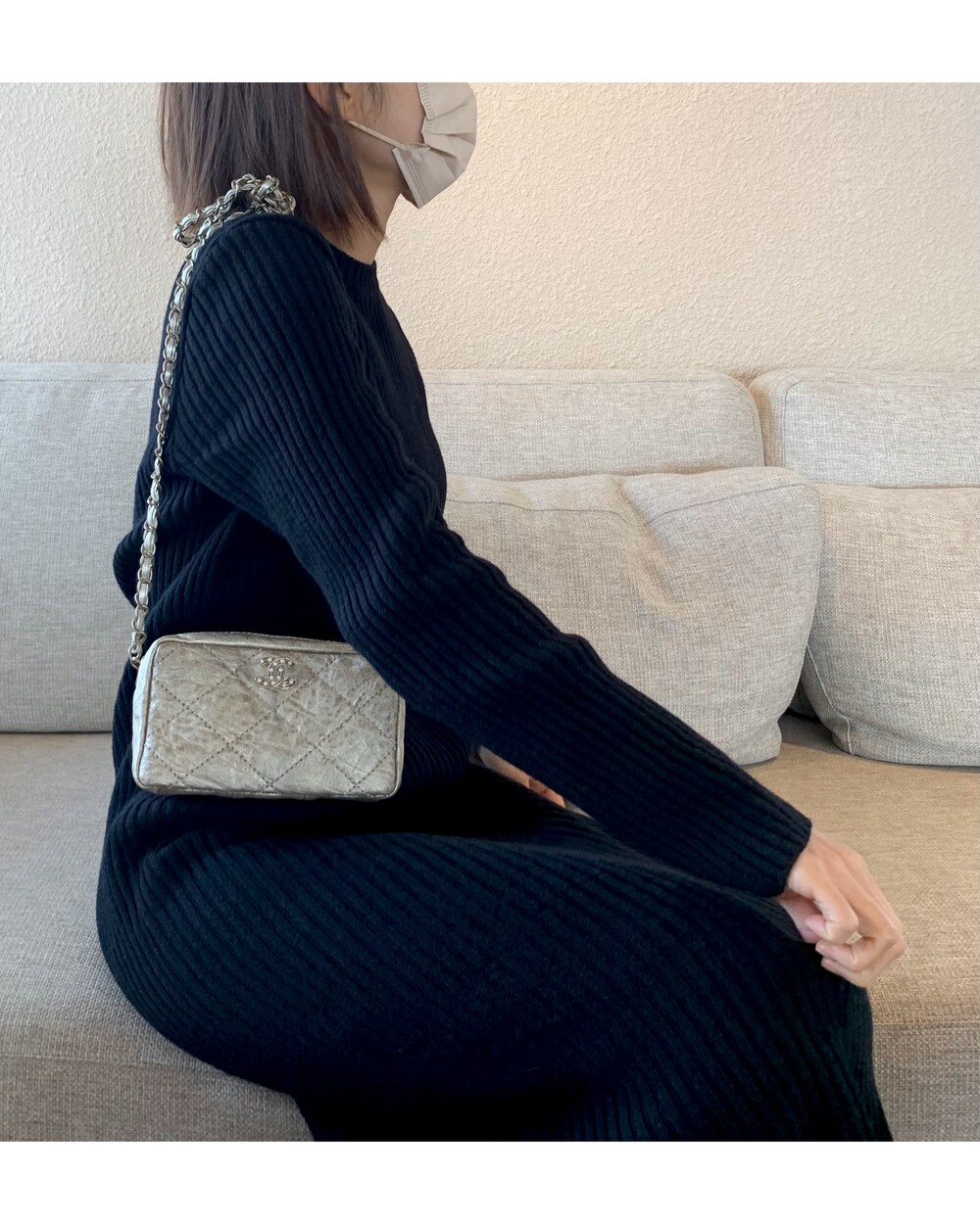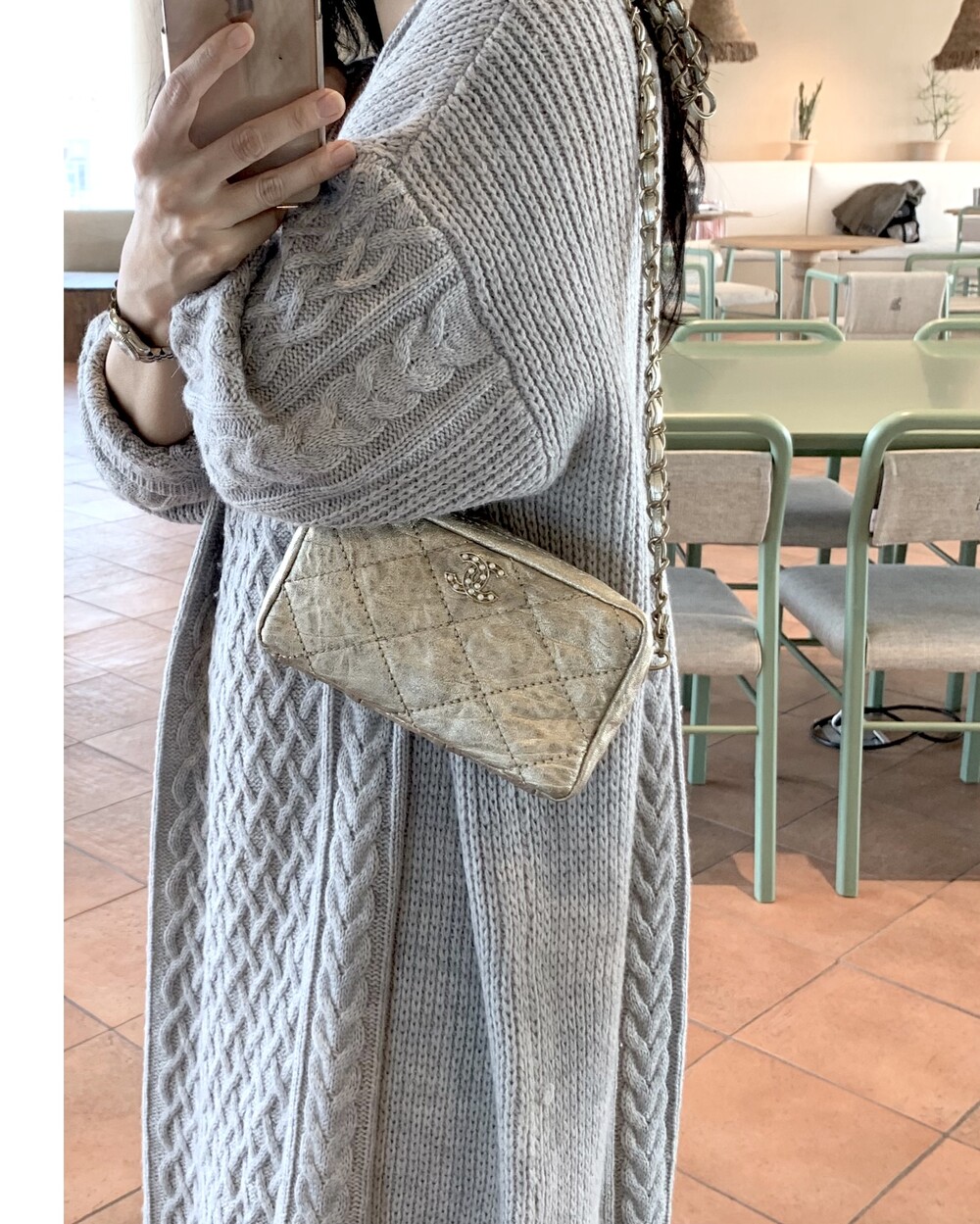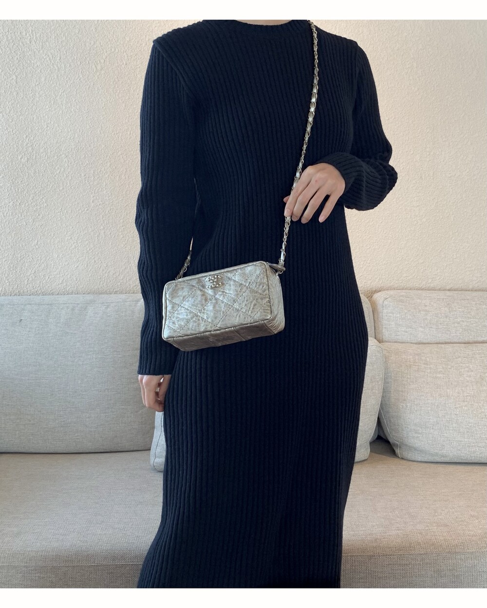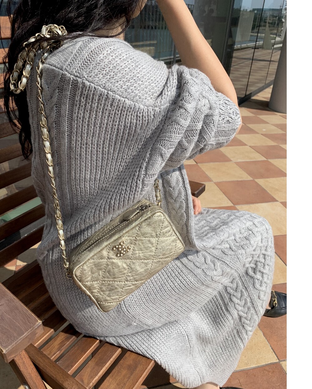 CHANEL gold quilting pearl CC camera bag no.46