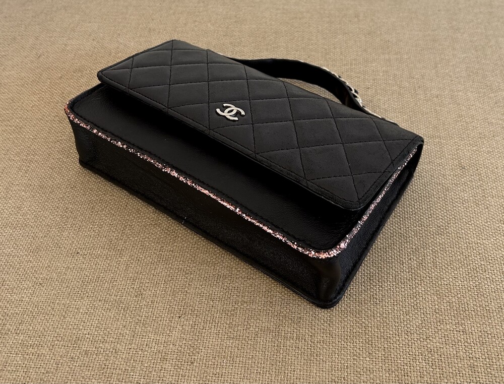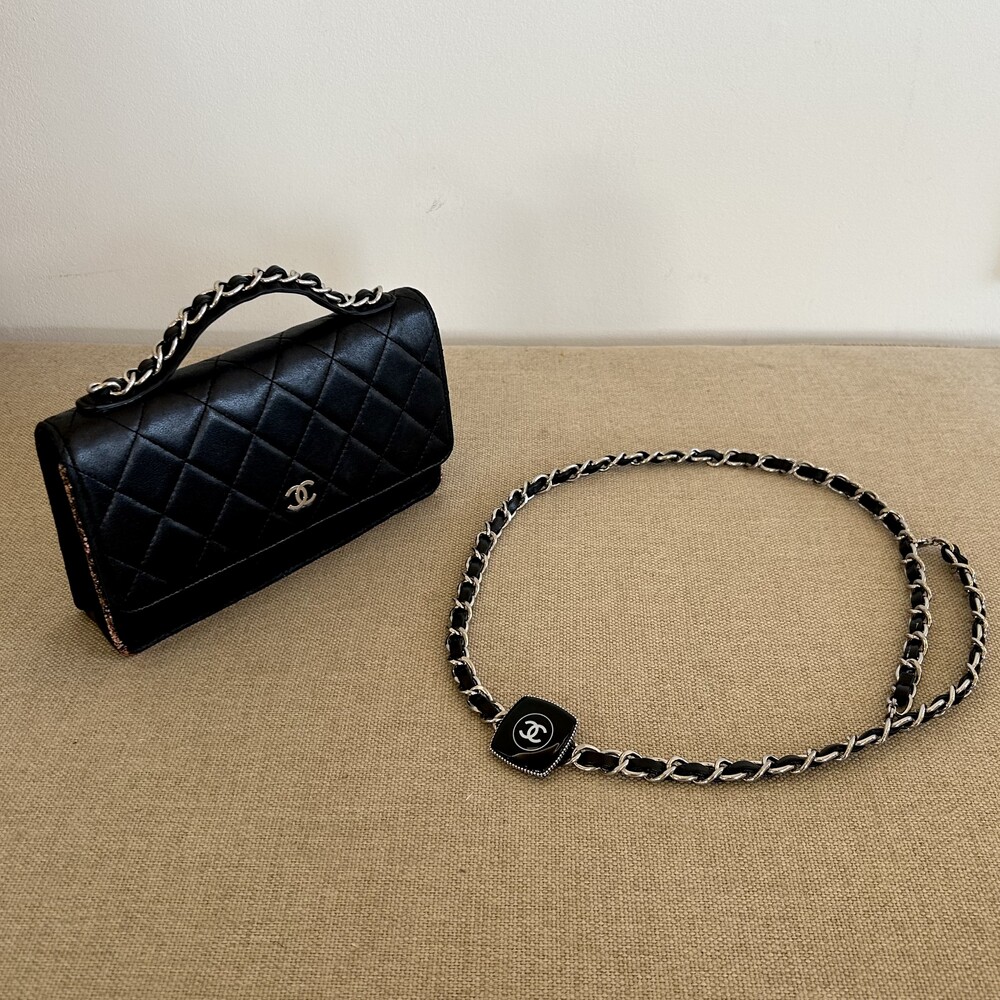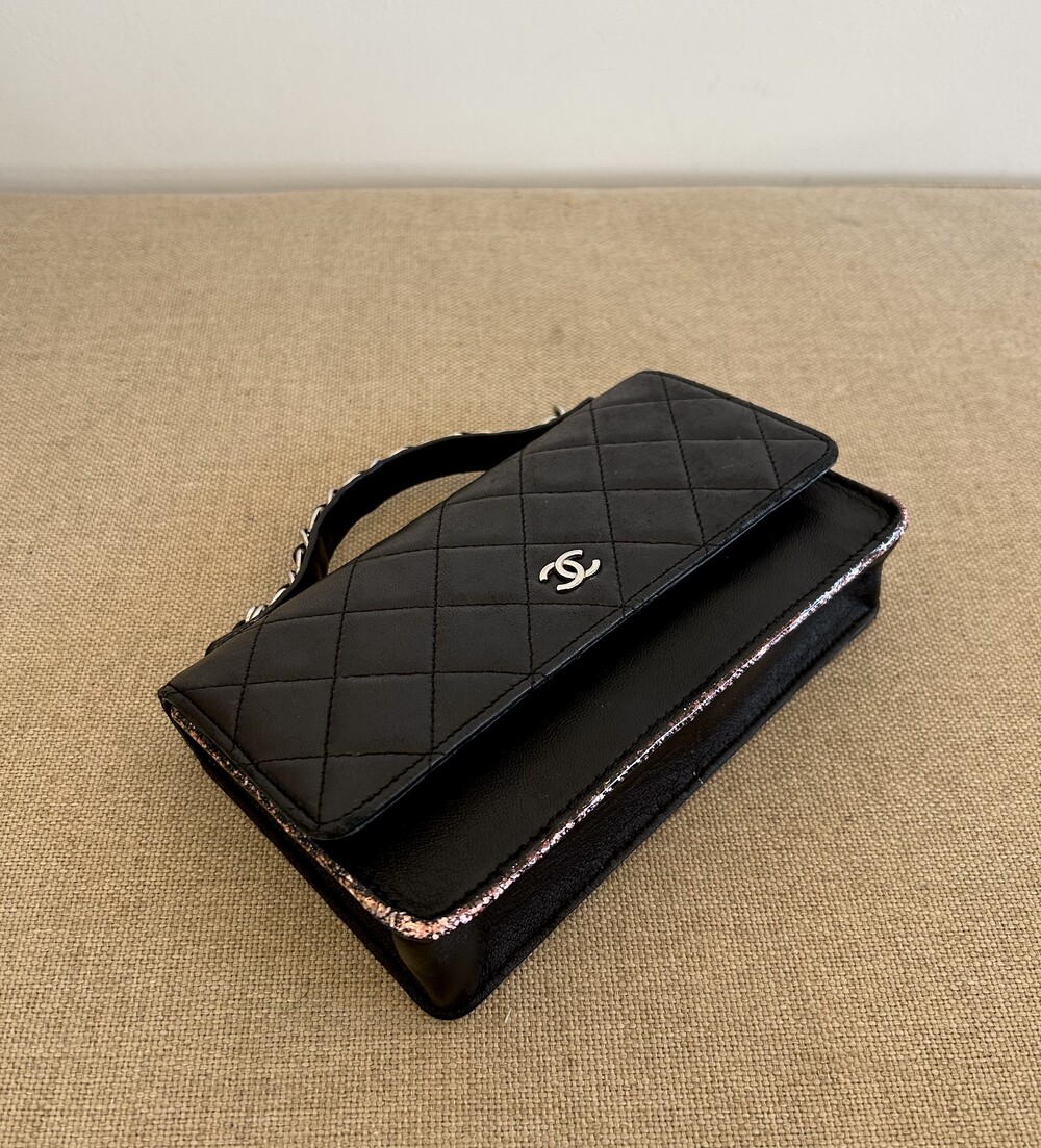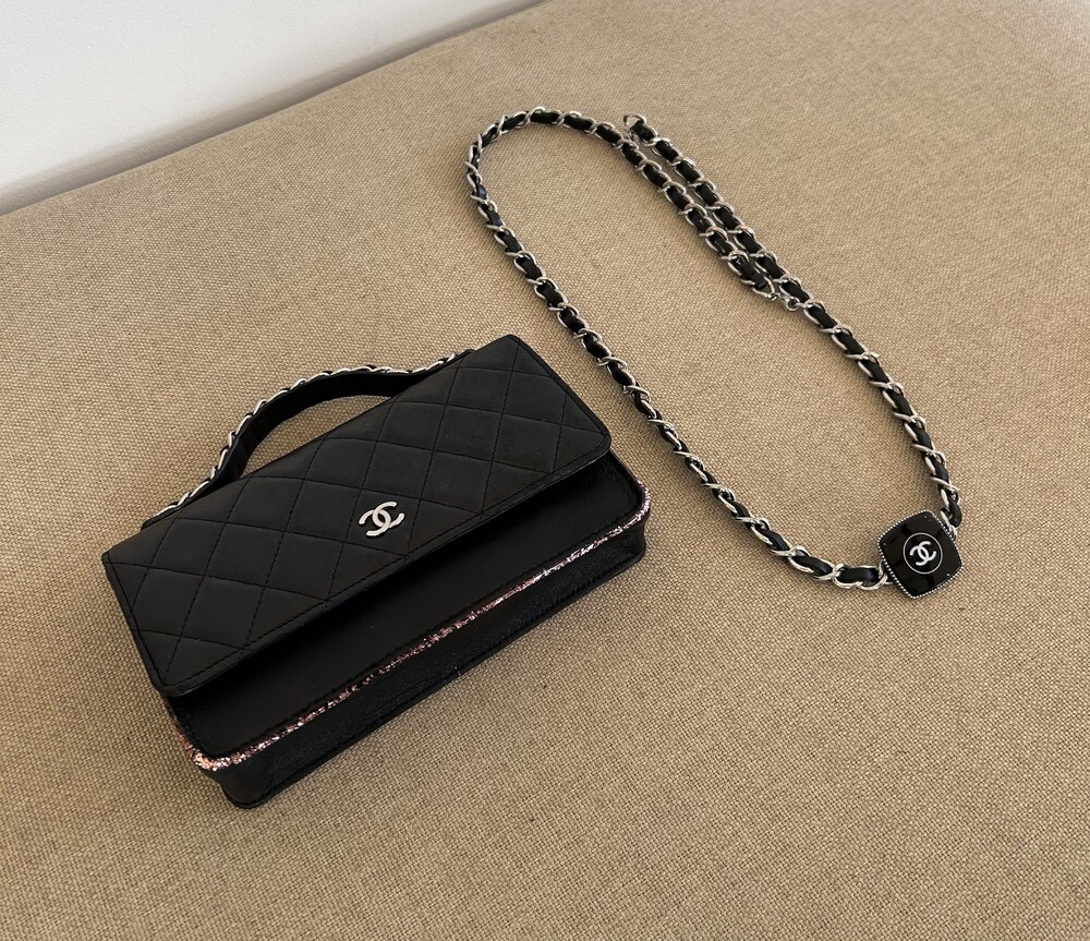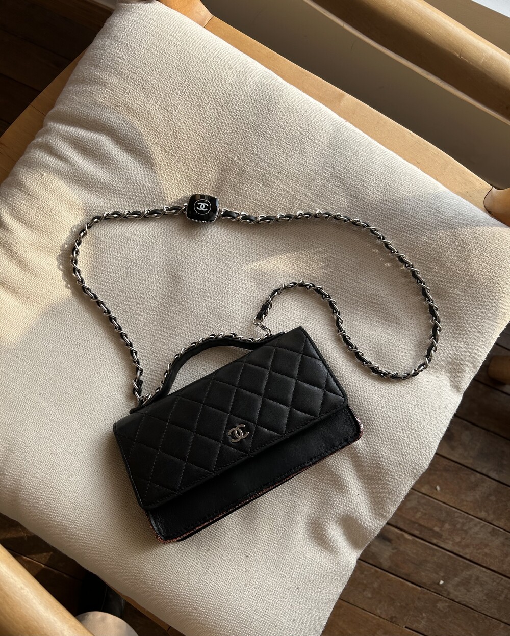 CHANEL black lambskin quilting mini tote & shoulder bag