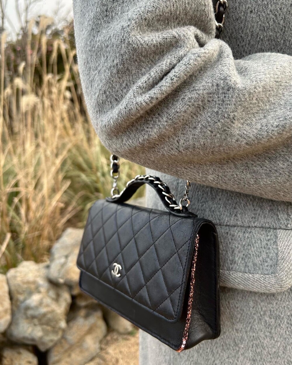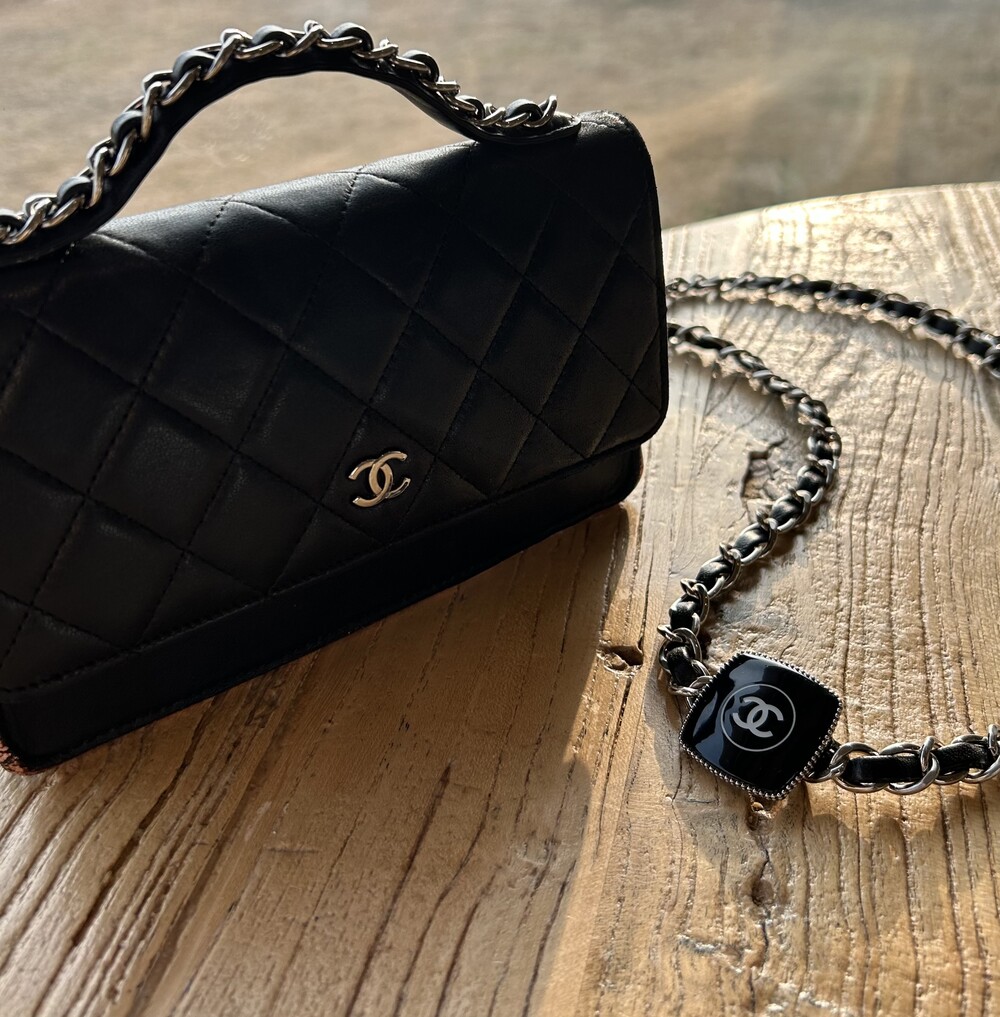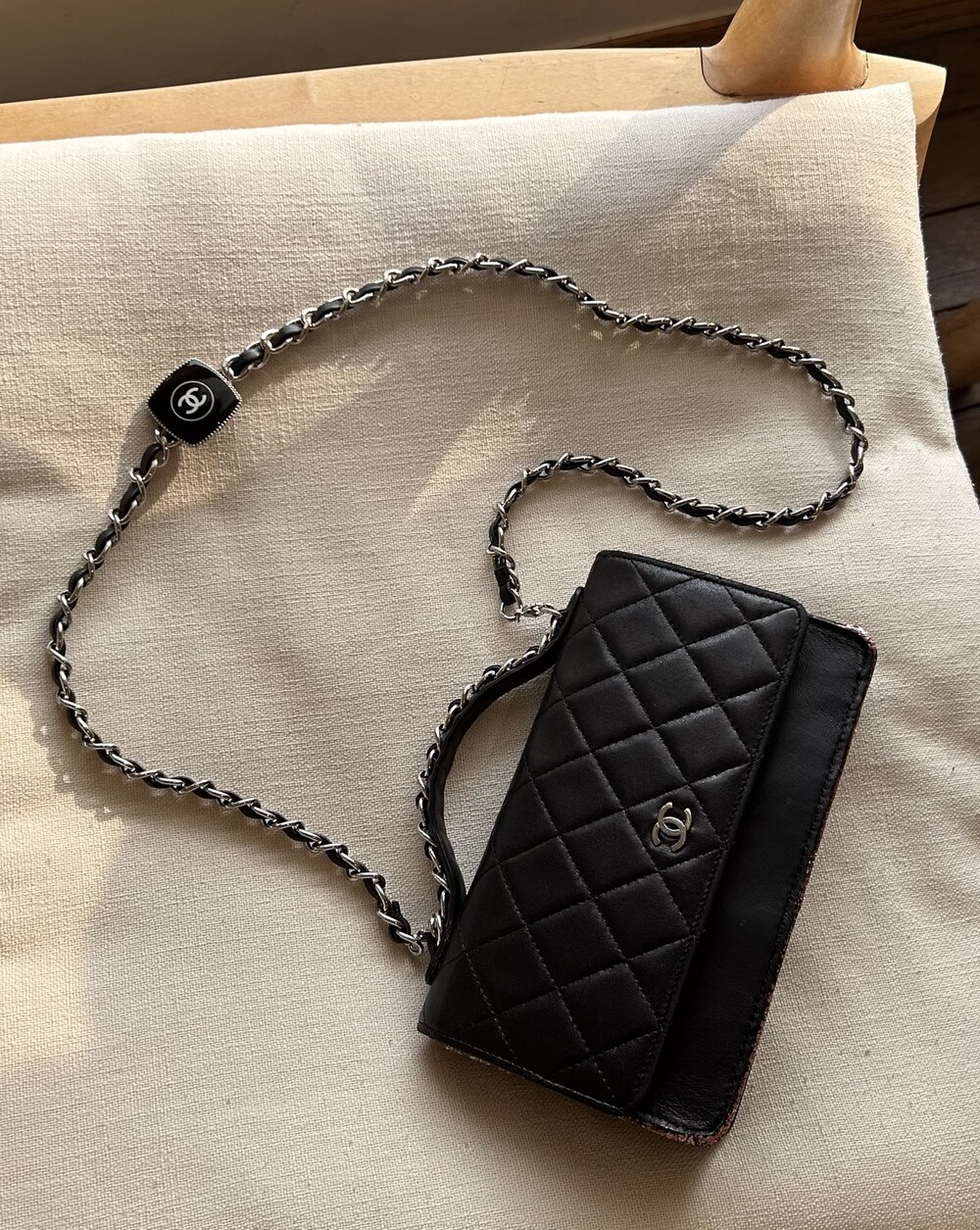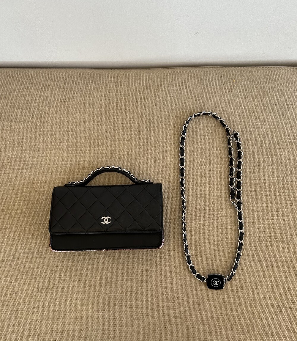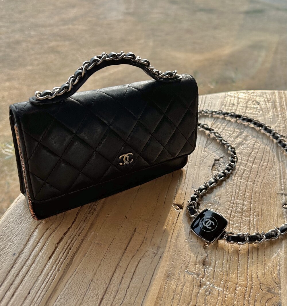 CHANEL black lambskin quilting mini tote & shoulder bag