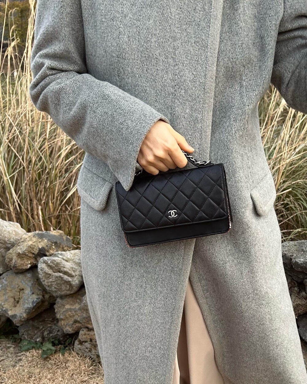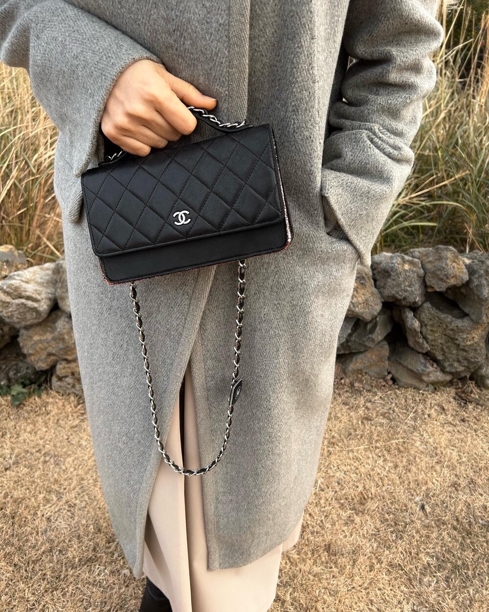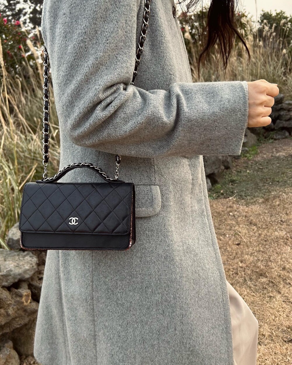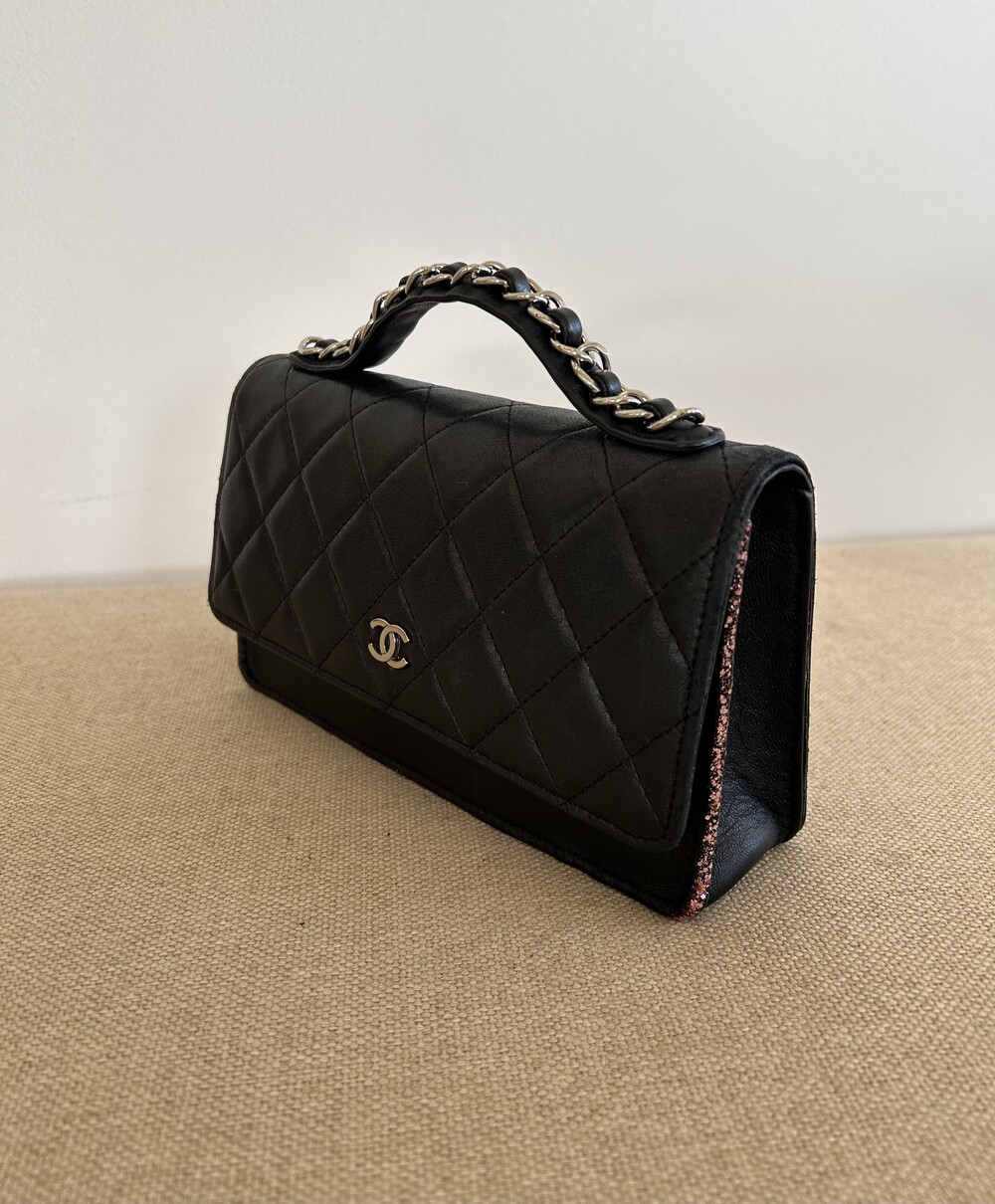 CHANEL black lambskin quilting mini tote & shoulder bag