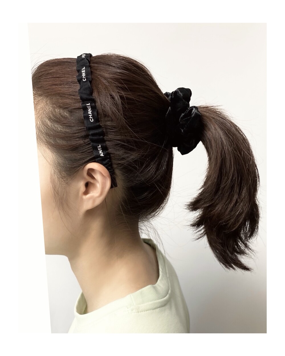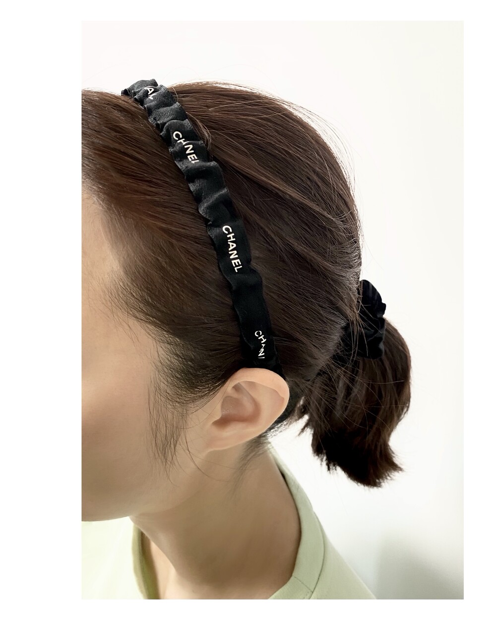 CHANEL black shirring hair band no.39