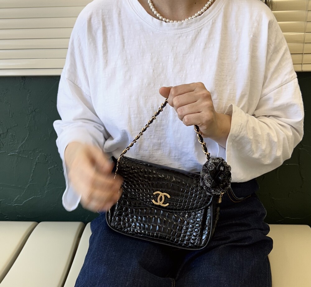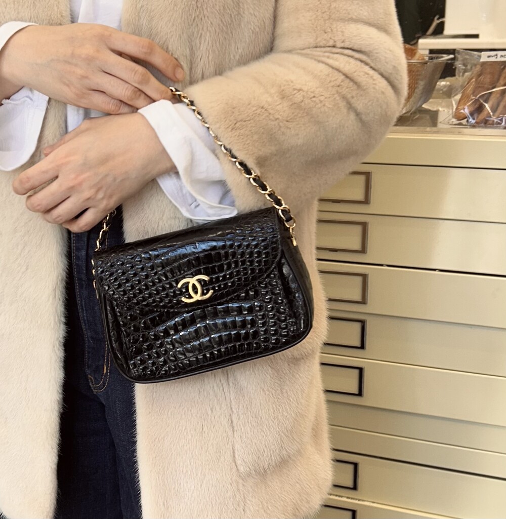 GENUINE vintage crocodile bag X CHANEL hanger CC objet no.45